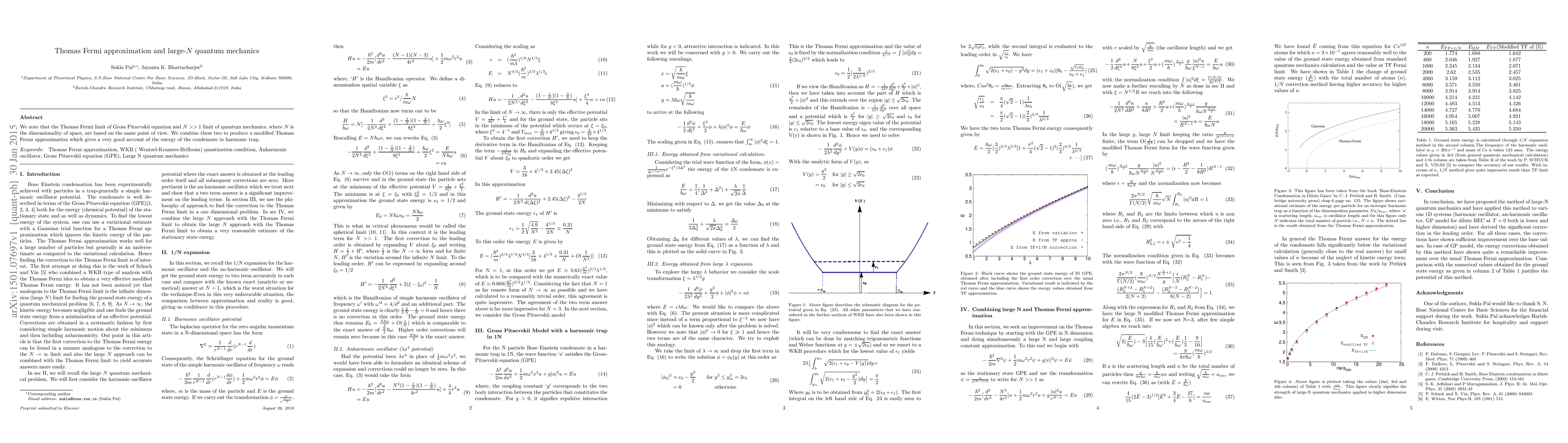 This paper combines the Thomas Fermi limit of the Gross Pitaevskii equation with the large-$N$ limit of quantum mechanics to develop a modified Thomas Fermi approximation, which effectively predicts the energy of a condensate in a harmonic trap.