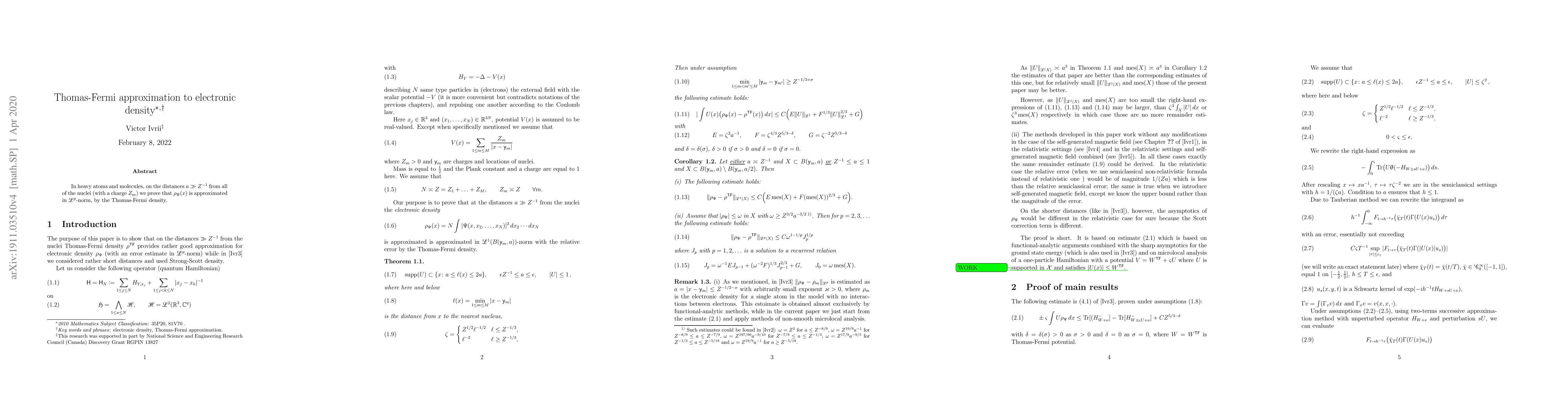 In heavy atoms and molecules, on the distances $a \gg Z^{-1}$ from all of the nuclei (with a charge $Z_m$) we prove that $\rho_\Psi (x)$ is approximated in $L^p$-norm, by the Thomas-Fermi density.