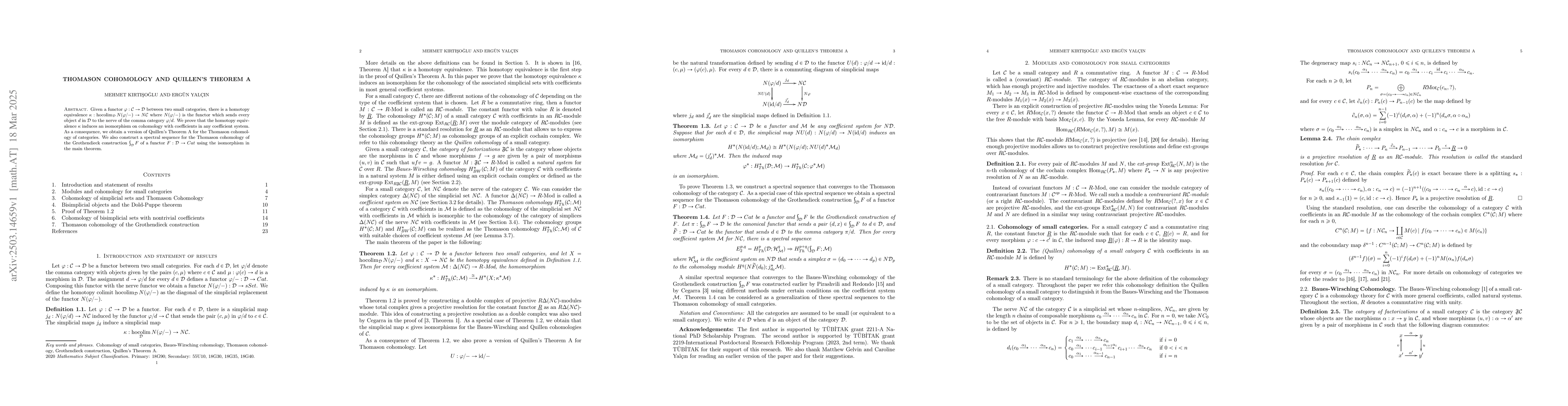 The paper introduces a homotopy equivalence that induces isomorphisms on Thomason cohomology, extending Quillen's Theorem A to category-theoretic contexts.