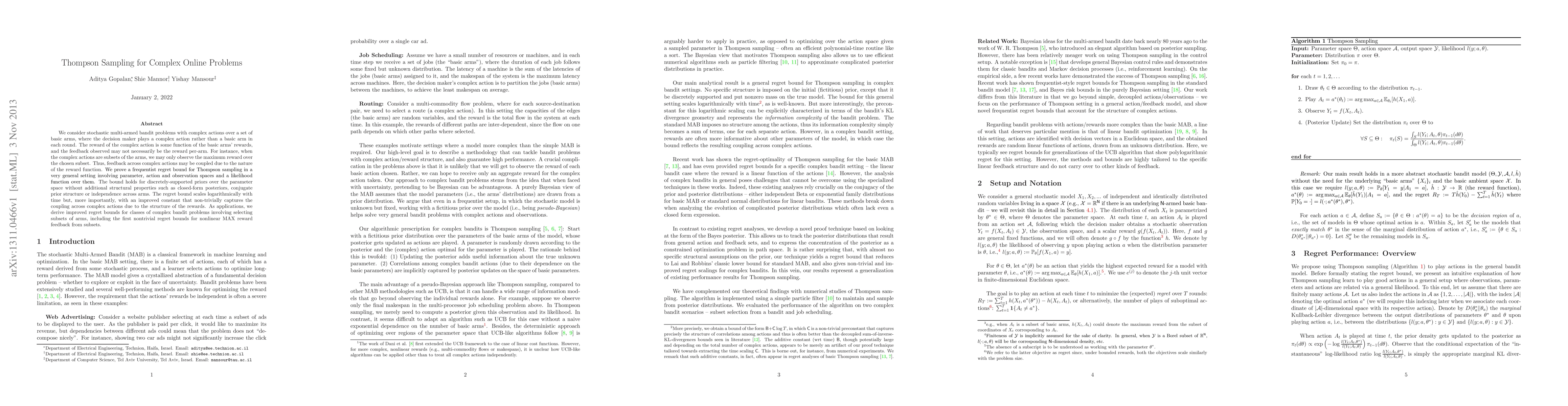 The research extends Thompson Sampling to a more general setting of complex bandit problems, providing a regret bound that accounts for the coupling across complex actions, which is a novel contribution in the field.