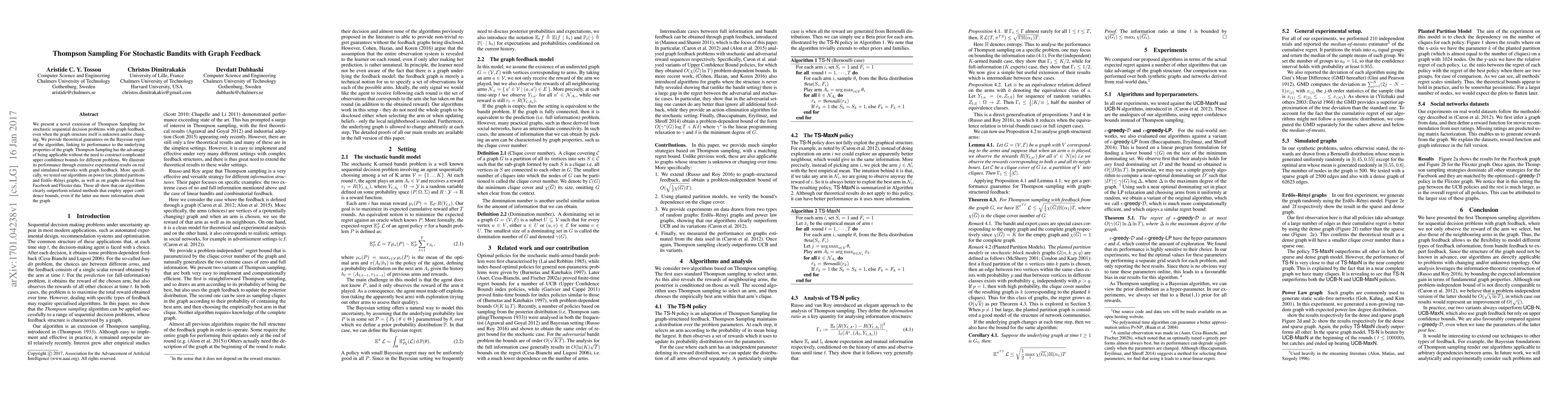 This paper extends Thompson Sampling for stochastic sequential decision problems with graph feedback, even when the graph structure is unknown or changing. The proposed algorithm provides theoretical guarantees on Bayesian regret and outperforms related methods in extensive experiments on various real and simulated networks.