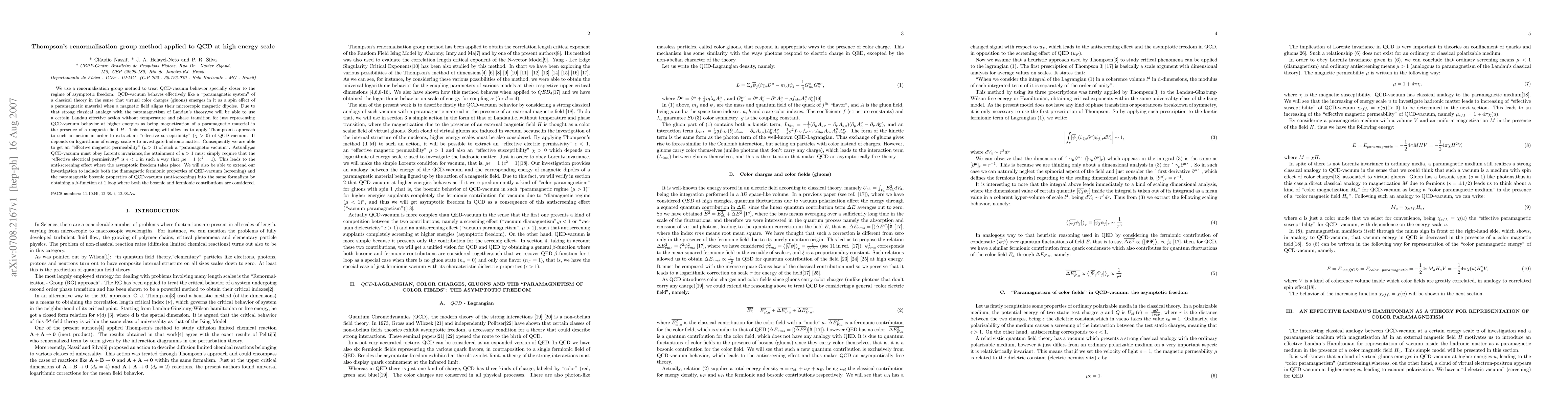 We use a renormalization group method to treat QCD-vacuum behavior specially closer to the regime of asymptotic freedom. QCD-vacuum behaves effectively like a "paramagnetic system" of a classical theory in the sense that virtual color charges (gluons) emerges in it as a spin effect of a paramagnetic material when a magnetic field aligns their microscopic magnetic dipoles. Due to that strong classical analogy with the paramagnetism of Landau's theory,we will be able to use a certain Landau effective action without temperature and phase transition for just representing QCD-vacuum behavior at higher energies as being magnetization of a paramagnetic material in the presence of a magnetic field $H$. This reasoning will allow us to apply Thompson's approach to such an action in order to extract an "effective susceptibility" ($\chi>0$) of QCD-vacuum. It depends on logarithmic of energy scale $u$ to investigate hadronic matter. Consequently we are able to get an ``effective magnetic permeability" ($\mu>1$) of such a "paramagnetic vacuum". Actually,as QCD-vacuum must obey Lorentz invariance,the attainment of $\mu>1$ must simply require that the "effective electrical permissivity" is $\epsilon<1$ in such a way that $\mu\epsilon=1$ ($c^2=1$). This leads to the anti-screening effect where the asymptotic freedom takes place. We will also be able to extend our investigation to include both the diamagnetic fermionic properties of QED-vacuum (screening) and the paramagnetic bosonic properties of QCD-vacuum (anti-screening) into the same formalism by obtaining a $\beta$-function at 1 loop,where both the bosonic and fermionic contributions are considered.