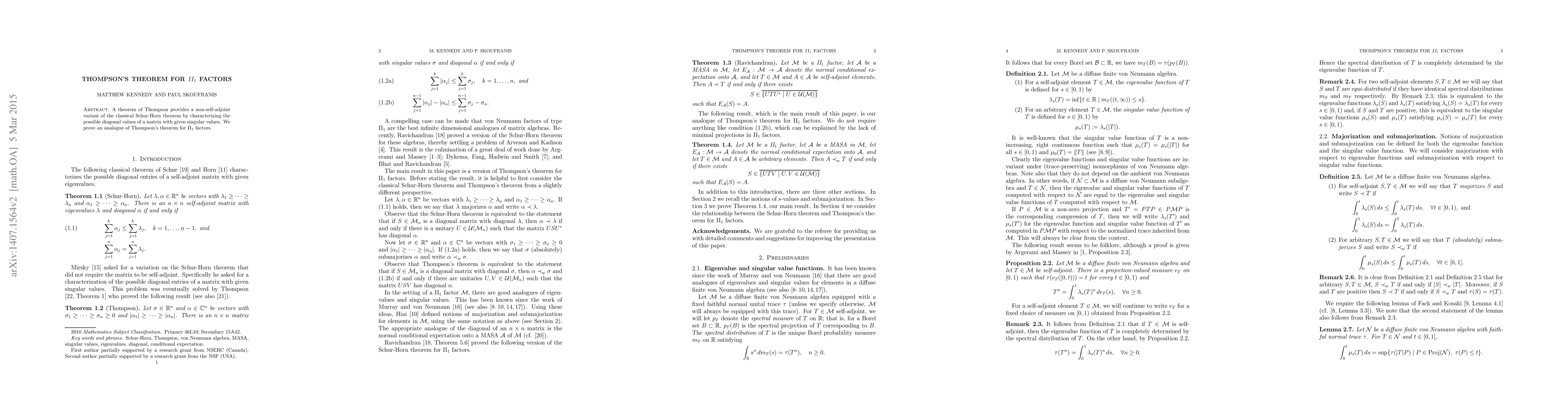 This paper proves an analogue of Thompson's theorem for II_1 factors, extending the classical Schur-Horn theorem to non-self-adjoint matrices and characterizing their diagonal values based on given singular values.