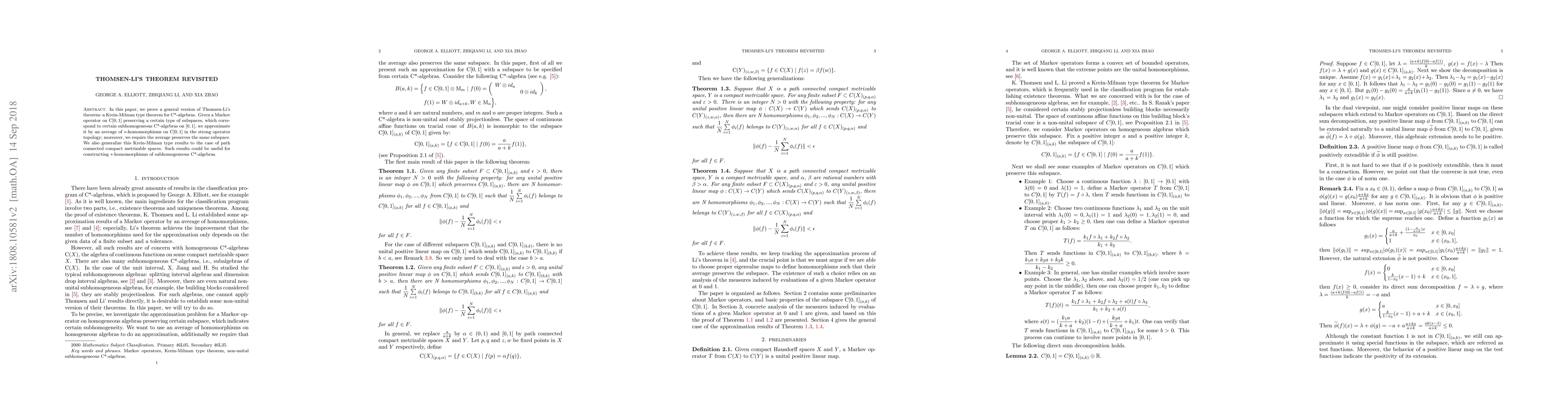 In this paper, we prove a general version of Thomsen-Li's Theorem--a Krein-Milman type theorem for C*-algebras. To be precise, for a Markov operator on $C[0,1]$ which preserves certain subspace of $C[0,1]$, we approximate it by an average of homomorphisms on $C[0,1]$ in the strong operator topology, additionally we require that this average also preserves the same subspace. Such results could be useful for constructing homomorphisms for subhomogeneous C*-algebras.