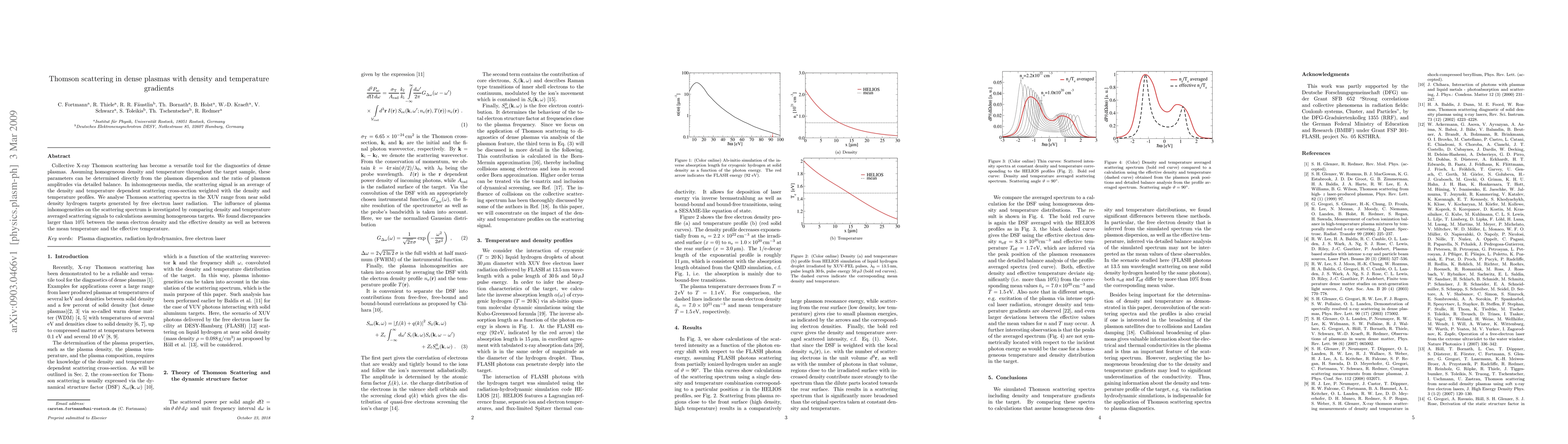 The paper presents a detailed analysis of Thomson scattering in inhomogeneous plasmas, considering density and temperature gradients, and highlights the discrepancies between mean plasma parameters and those inferred from scattering spectra.