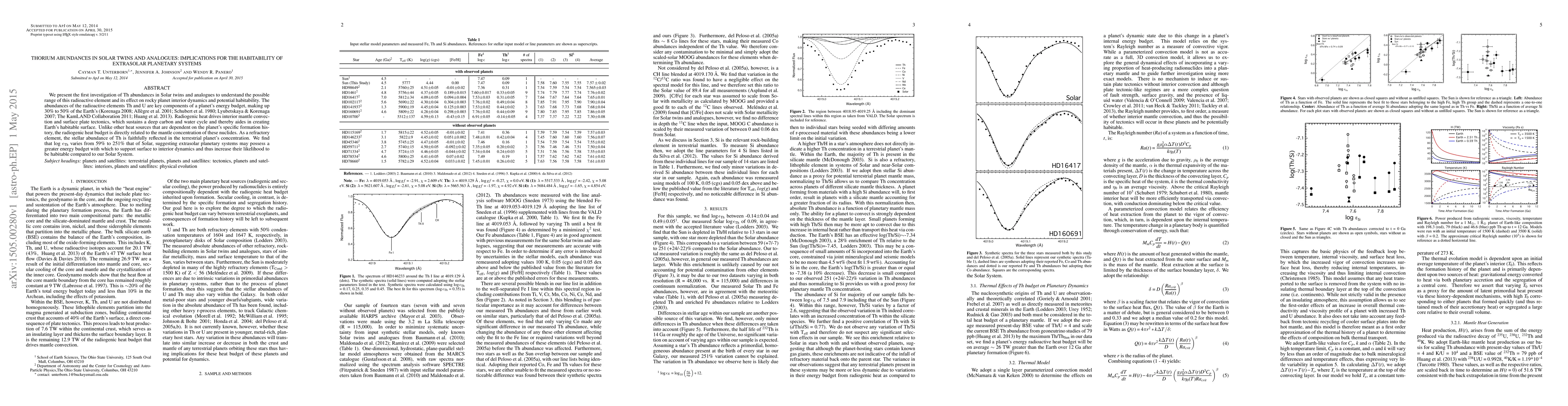 We present the first investigation of Th abundances in Solar twins and analogues to understand the possible range of this radioactive element and its effect on rocky planet interior dynamics and potential habitability. The abundances of the radioactive elements Th and U are key components of a planet's energy budget, making up 30% to 50% of the Earth's (Korenaga 2008; All\`egre et al. 2001; Schubert et al. 1980; Lyubetskaya & Korenaga 2007; The KamLAND Collaboration 2011; Huang et al. 2013). Radiogenic heat drives interior mantle convection and surface plate tectonics, which sustains a deep carbon and water cycle and thereby aides in creating Earth's habitable surface. Unlike other heat sources that are dependent on the planet's specific formation history, the radiogenic heat budget is directly related to the mantle concentration of these nuclides. As a refractory element, the stellar abundance of Th is faithfully reflected in the terrestrial planet's concentration. We find that log eps Th varies from 59% to 251% that of Solar, suggesting extrasolar planetary systems may possess a greater energy budget with which to support surface to interior dynamics and thus increase their likelihood to be habitable compared to our Solar System.