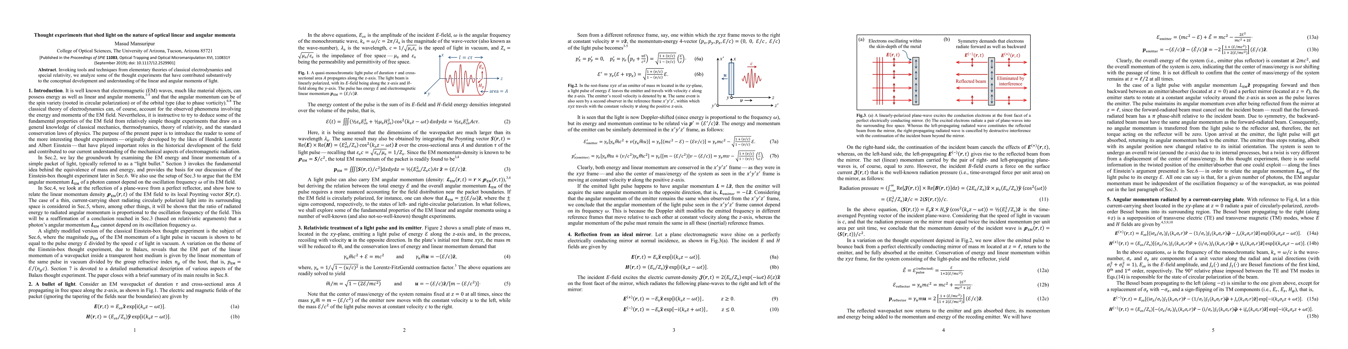 Invoking tools and techniques from elementary theories of classical electrodynamics and special relativity, we analyze some of the thought experiments that have contributed substantively to the conceptual development and understanding of the linear and angular momenta of light.