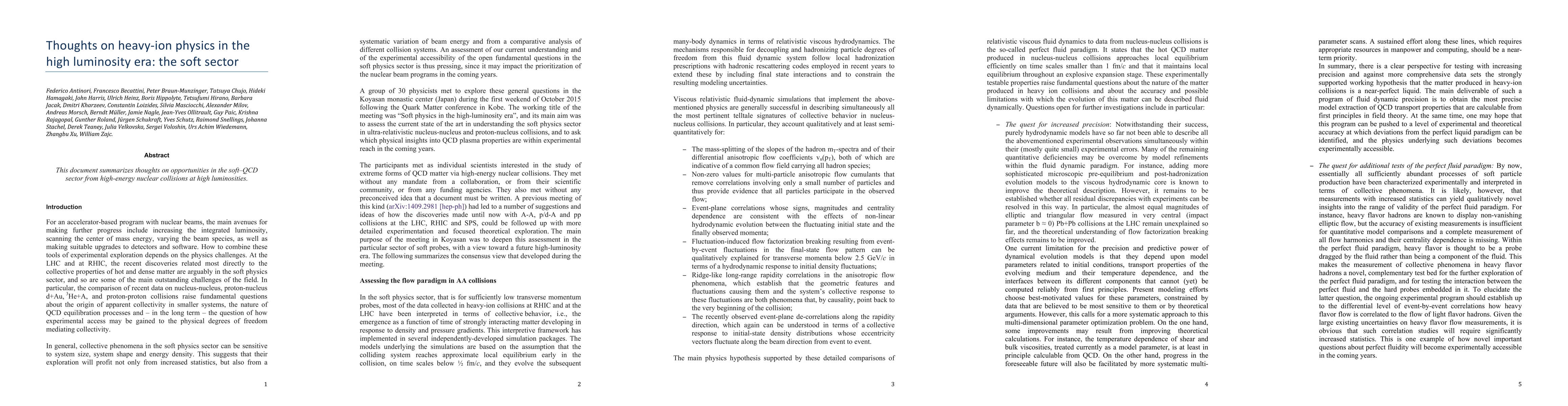 This document summarizes thoughts on opportunities in the soft-QCD sector from high-energy nuclear collisions at high luminosities.