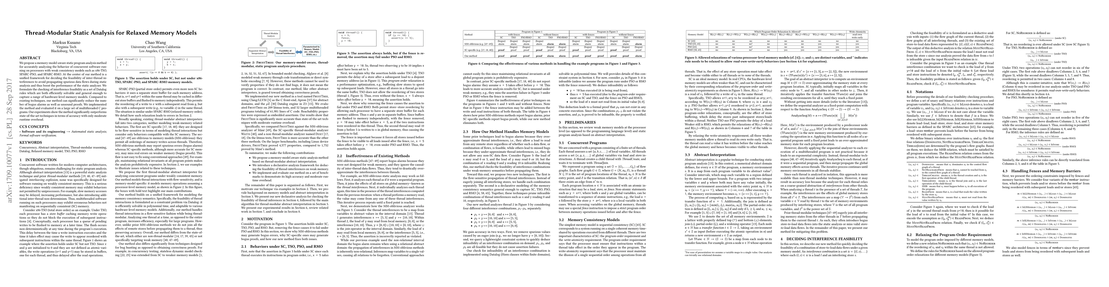 This paper introduces a memory-model-aware static analysis framework for concurrent software on weakly consistent processors, reducing false alarms and unsound proofs. It employs Datalog rules for efficient interference feasibility checking and outperforms existing techniques in accuracy with moderate overhead.