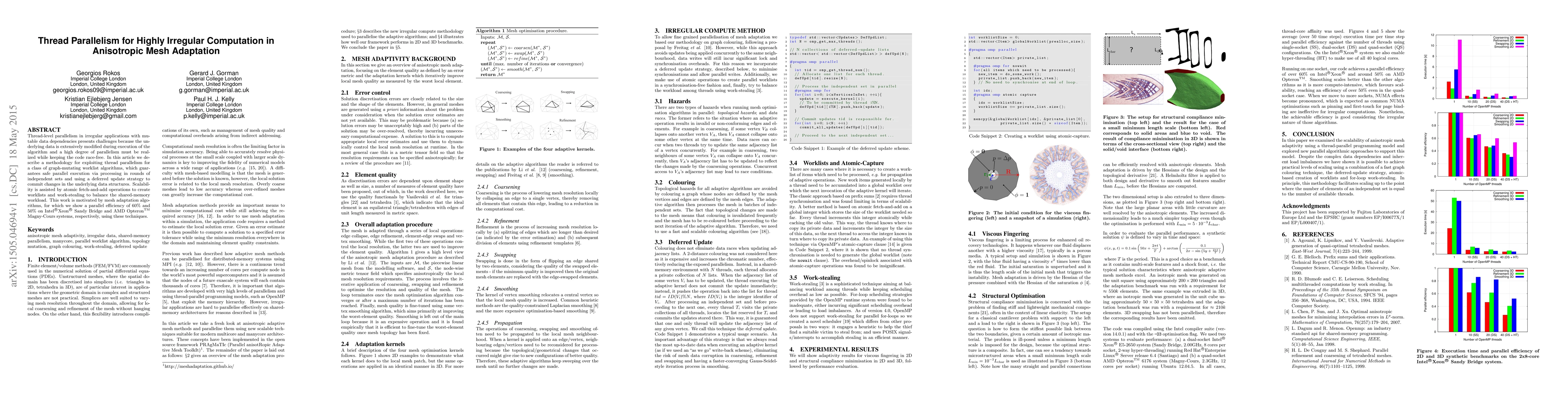 This paper proposes a methodology for achieving thread-level parallelism in graph-mutating worklist algorithms, ensuring safe execution through independent processing rounds and deferred updates. The approach demonstrates 60% and 50% parallel efficiency on Intel and AMD systems respectively, highlighting its effectiveness in mesh adaptation.