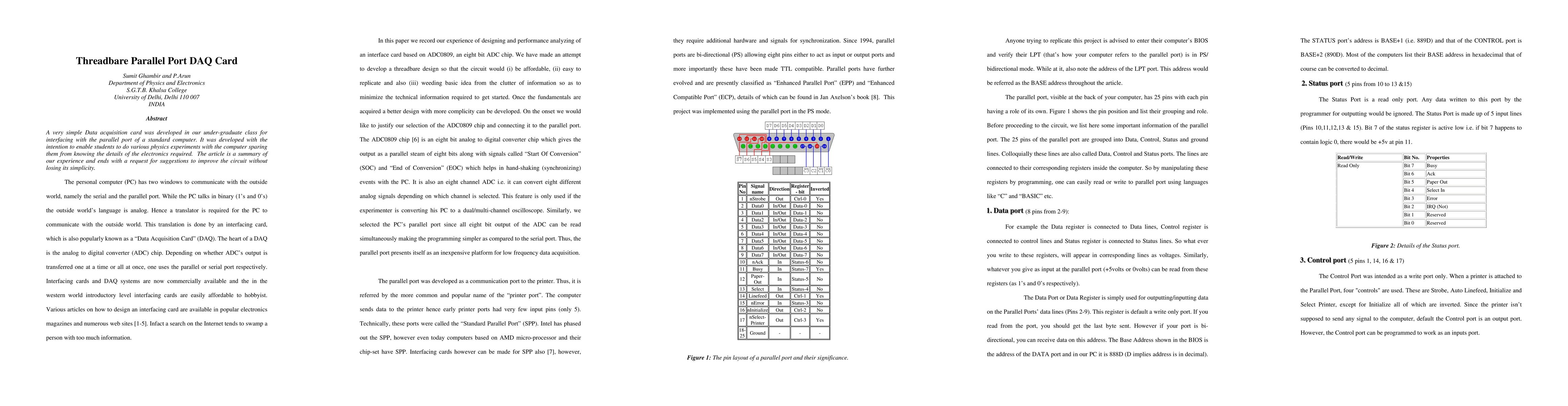 A simple parallel port DAQ card was developed for undergraduate physics experiments, allowing students to interface with computers without detailed electronics knowledge. Suggestions for improving the circuit's simplicity were solicited.