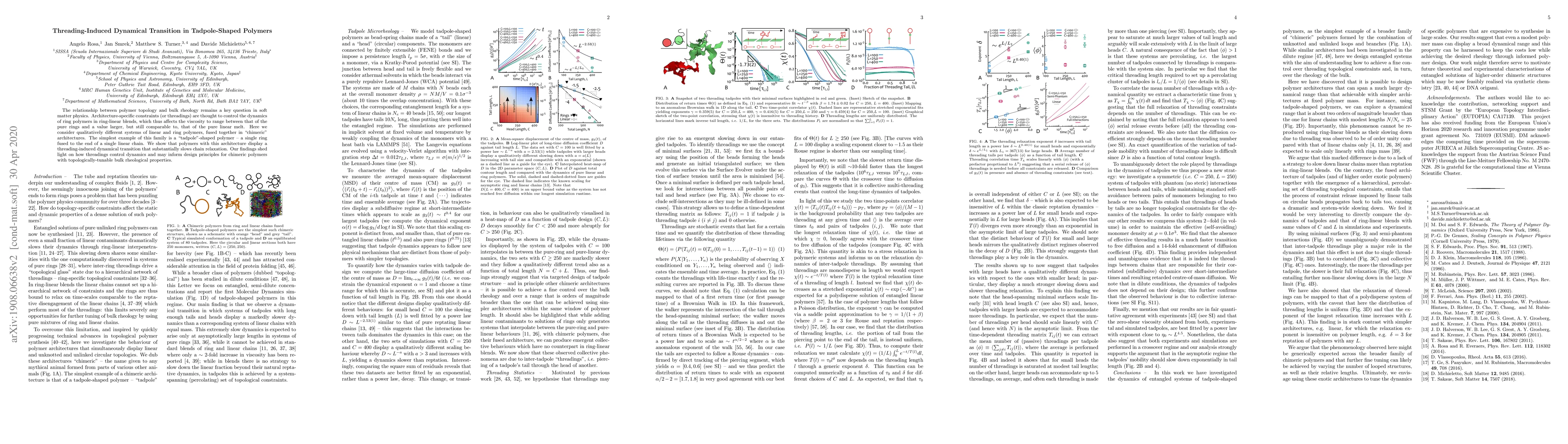 Researchers discover a dynamic transition in tadpole-shaped polymers that significantly slows chain relaxation due to threading-induced constraints. This finding sheds light on how topological architectures can control bulk rheological properties in chimeric polymers.