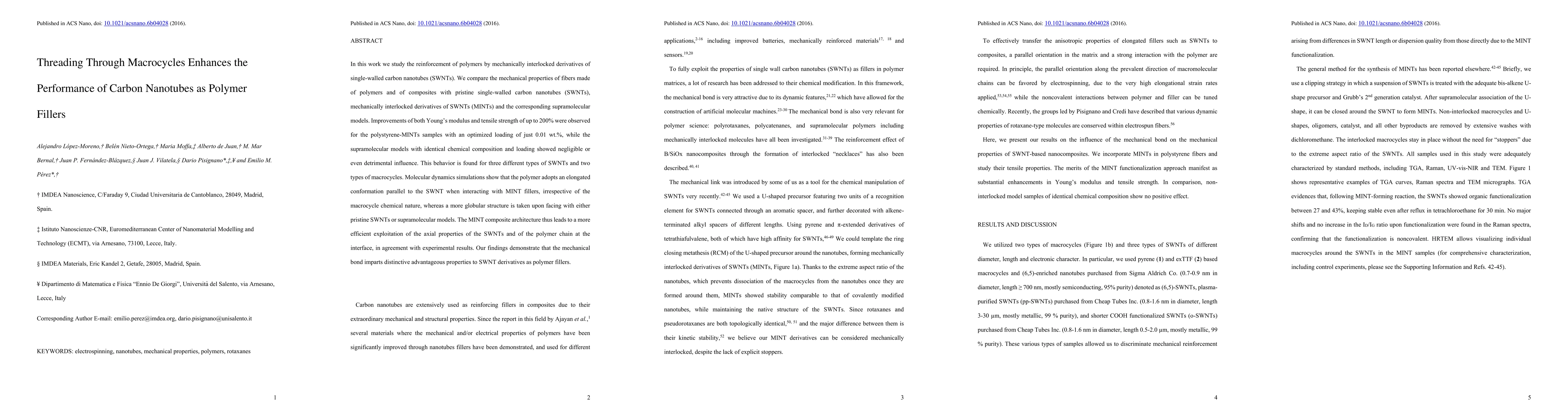 In this work we study the reinforcement of polymers by mechanically interlocked derivatives of single-walled carbon nanotubes (SWNTs). We compare the mechanical properties of fibers made of polymers and of composites with pristine single-walled carbon nanotubes (SWNTs), mechanically interlocked derivatives of SWNTs (MINTs) and the corresponding supramolecular models. Improvements of both Young's modulus and tensile strength of up to 200 % were observed for the polystyrene-MINTs samples with an optimized loading of just 0.01 wt.%, while the supramolecular models with identical chemical composition and loading showed negligible or even detrimental influence. This behavior is found for three different types of SWNTs and two types of macrocycles. Molecular dynamics simulations show that the polymer adopts an elongated conformation parallel to the SWNT when interacting with MINT fillers, irrespective of the macrocycle chemical nature, whereas a more globular structure is taken upon facing with either pristine SWNTs or supramolecular models. The MINT composite architecture thus leads to a more efficient exploitation of the axial properties of the SWNTs and of the polymer chain at the interface, in agreement with experimental results. Our findings demonstrate that the mechanical bond imparts distinctive advantageous properties to SWNT derivatives as polymer fillers.