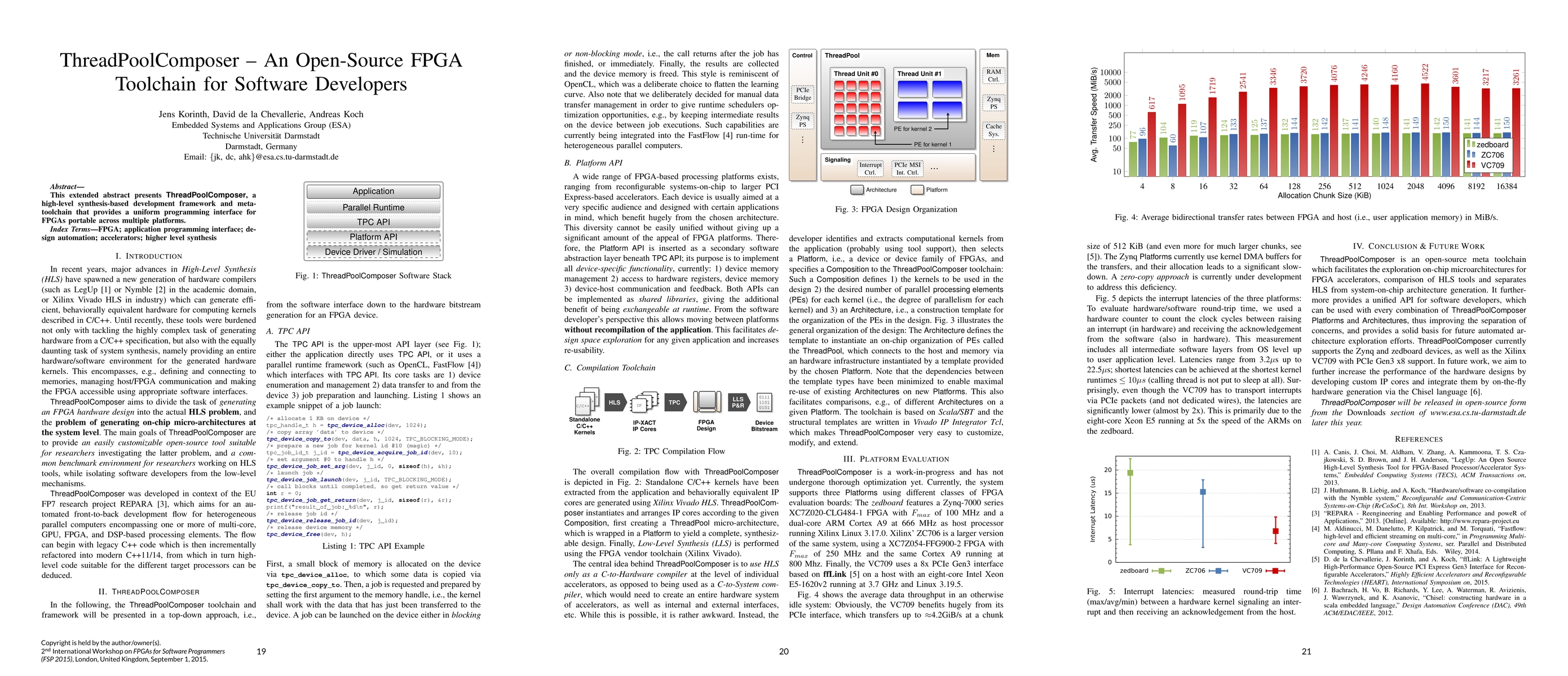 ThreadPoolComposer is an open-source FPGA toolchain that provides a uniform programming interface for FPGAs across multiple platforms, enabling software developers to design and deploy portable and efficient embedded systems.
