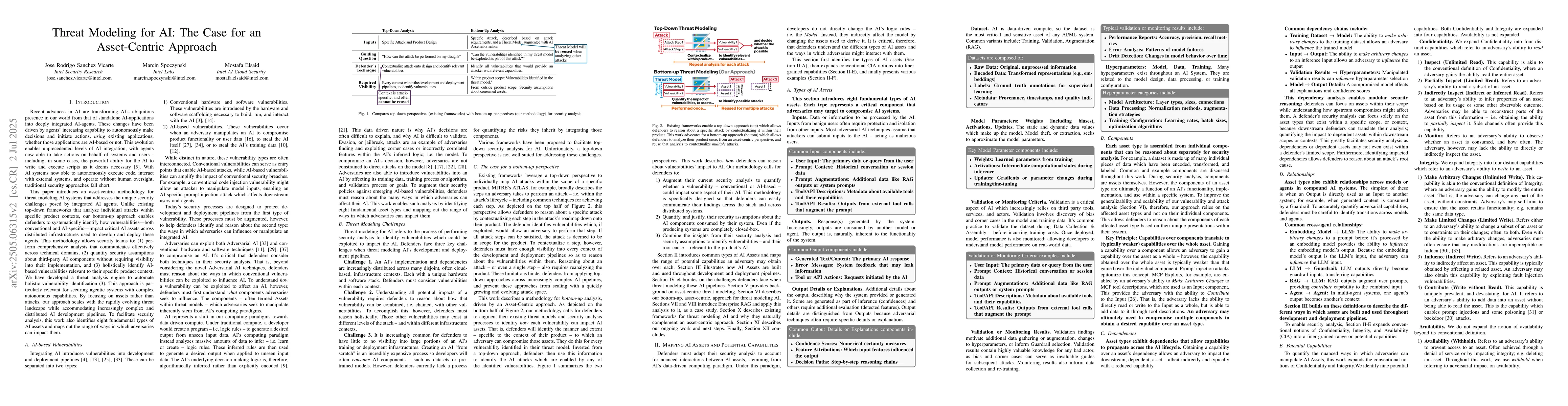 The paper introduces an asset-centric methodology for threat modeling AI systems, focusing on identifying vulnerabilities impacting critical AI assets across distributed infrastructures.