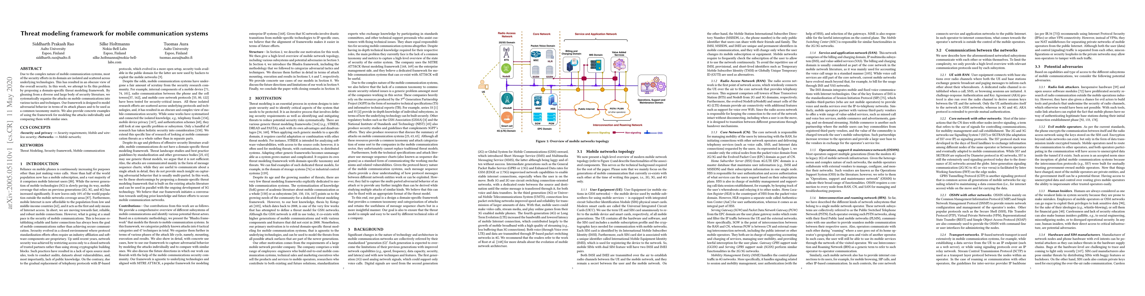 Due to the complex nature of mobile communication systems, most of the security efforts in its domain are isolated and scattered across underlying technologies. This has resulted in an obscure view of the overall security. In this work, we attempt to fix this problem by proposing a domain-specific threat modeling framework. By gleaning from a diverse and large body of security literature, we systematically organize the attacks on mobile communications into various tactics and techniques. Our framework is designed to model adversarial behavior in terms of its attack phases and to be used as a common taxonomy matrix. We also provide concrete examples of using the framework for modeling the attacks individually and comparing them with similar ones.