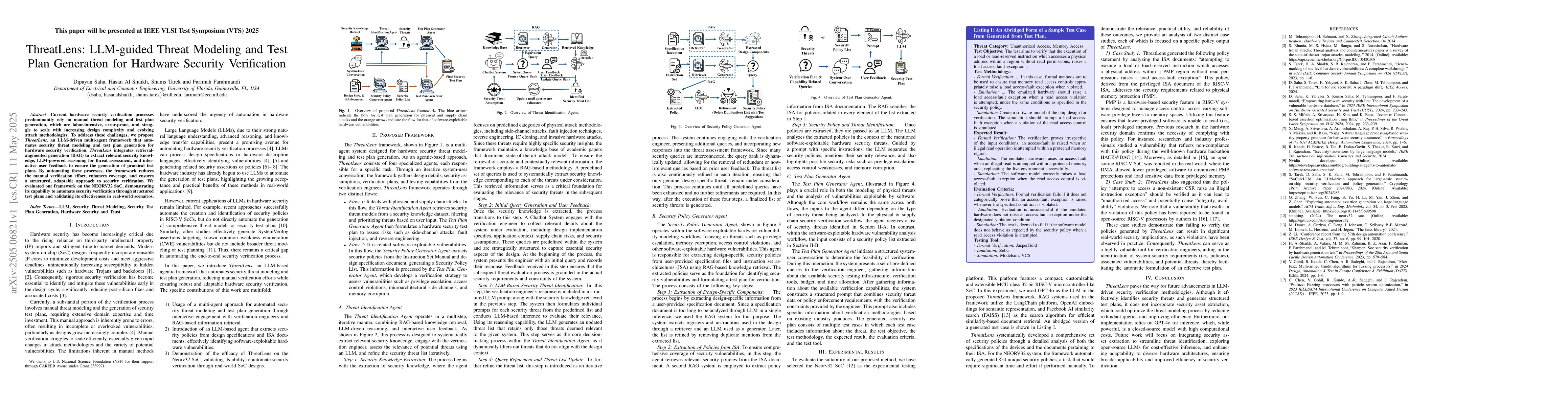 ThreatLens automates security threat modeling and test plan generation for hardware security verification, reducing manual effort and enhancing coverage.