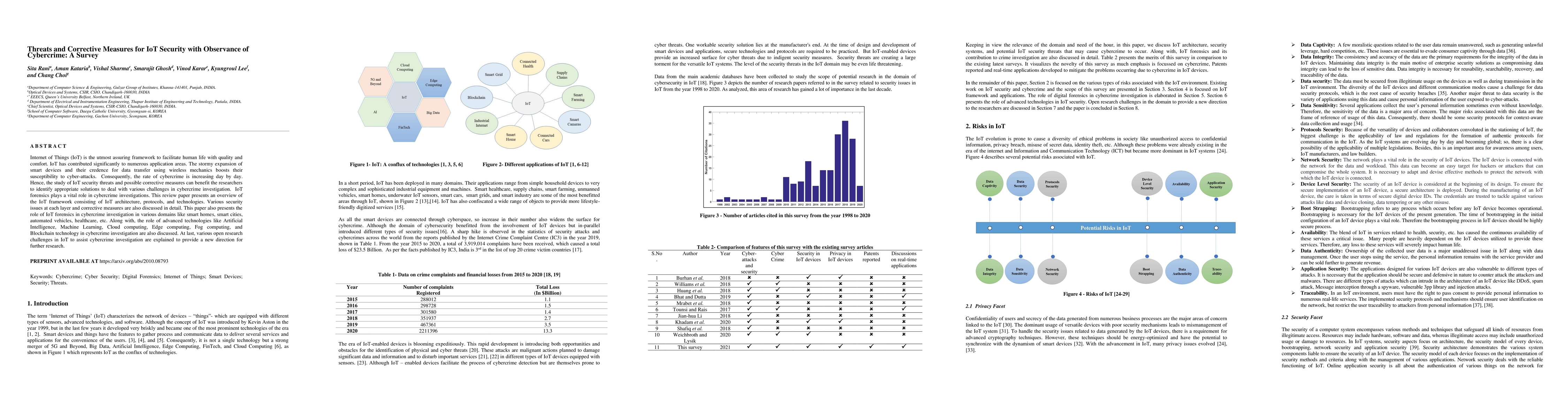 This paper surveys IoT security threats and proposes corrective measures, emphasizing the role of IoT forensics in cybercrime investigations across various domains. It discusses advanced technologies like AI and Blockchain to tackle these challenges and highlights open research areas for future exploration.