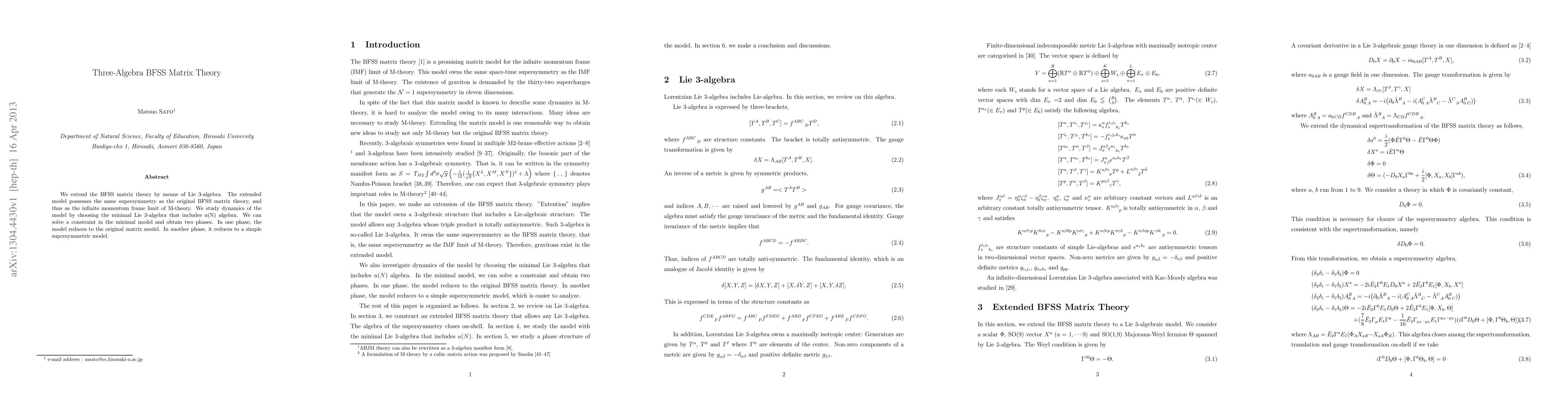 The paper extends the BFSS matrix theory using a Lie 3-algebra, maintaining the original supersymmetry and dynamics. The study reveals two phases: one reverts to the original matrix model, while the other simplifies to a supersymmetric model.
