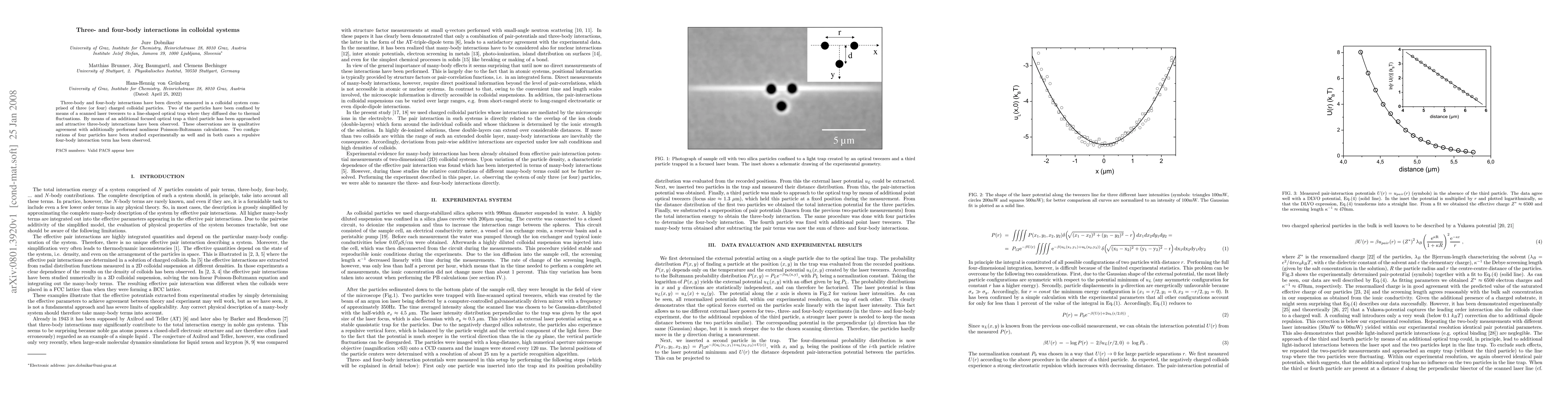 This research directly measures three- and four-body interactions in colloidal systems using laser tweezers, observing attractive three-body and repulsive four-body interactions, which align with nonlinear Poisson-Boltzmann calculations.