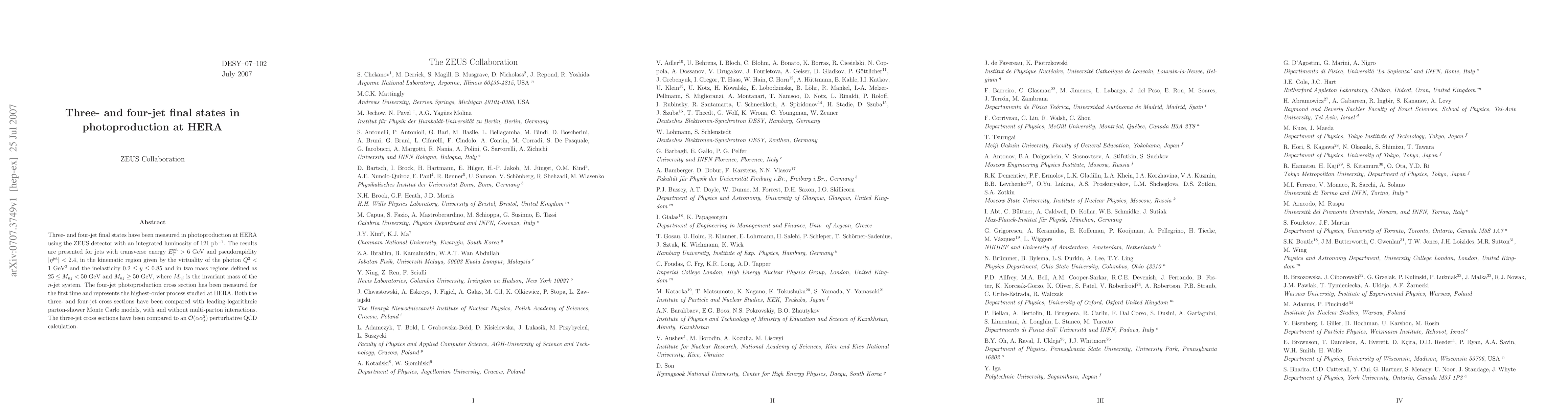 This paper reports on the measurement of three- and four-jet final states in photoproduction at HERA using the ZEUS detector, focusing on jets with specific energy and rapidity criteria. The four-jet photoproduction cross section is measured for the first time, and results are compared with theoretical models including perturbative QCD calculations and parton-shower Monte Carlo simulations.