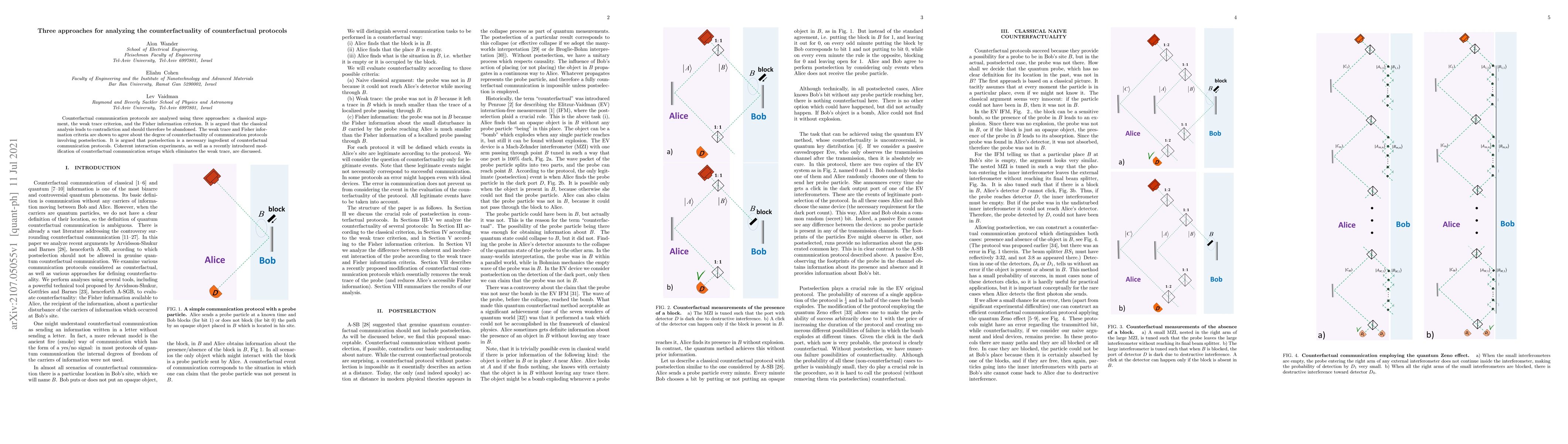 Counterfactual communication protocols are analysed using three approaches: a classical argument, the weak trace criterion, and the Fisher information criterion. It is argued that the classical analysis leads to contradiction and should therefore be abandoned. The weak trace and Fisher information criteria are shown to agree about the degree of counterfactuality of communication protocols involving postselection. It is argued that postselection is a necessary ingredient of counterfactual communication protocols. Coherent interaction experiments, as well as a recently introduced modification of counterfactual communication setups which eliminates the weak trace, are discussed.