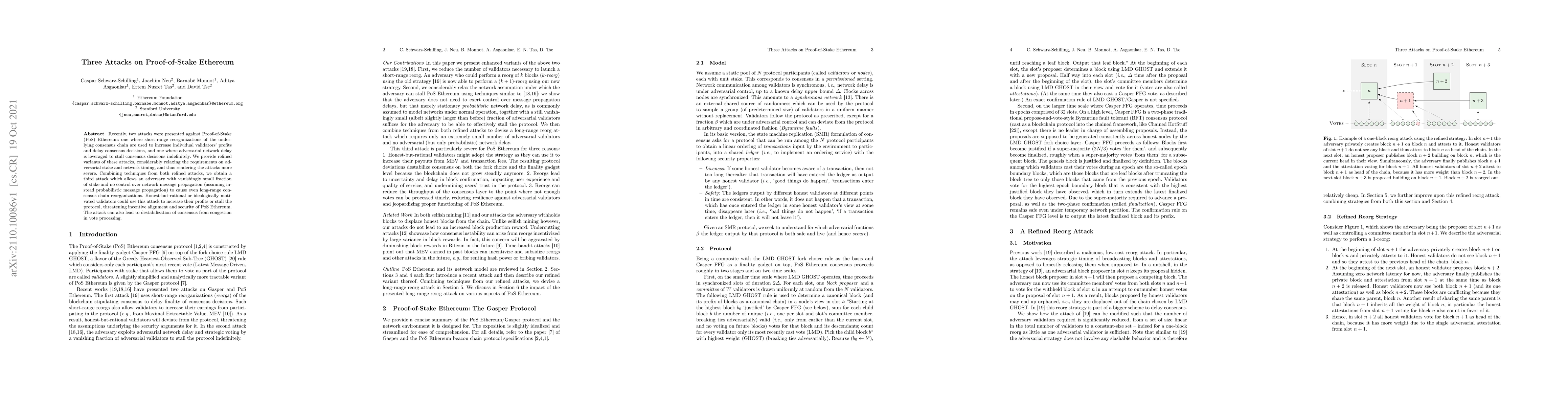 This paper presents three attacks on Proof-of-Stake Ethereum, refining previous methods to require less stake and network control. It combines these techniques to enable a third attack that can cause long-range consensus chain reorganizations, threatening the protocol's security and incentivizing alignment.