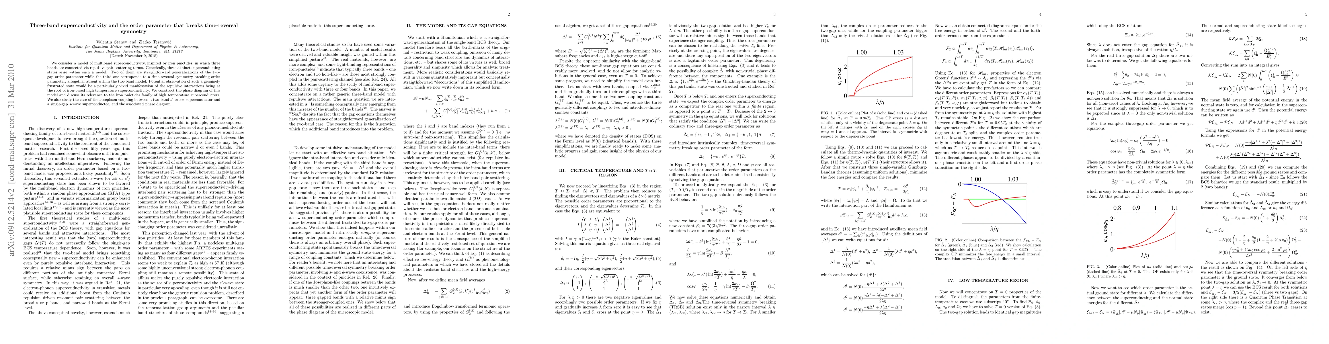 We consider a model of multiband superconductivity, inspired by iron pnictides, in which three bands are connected via repulsive pair-scattering terms. Generically, three distinct superconducting states arise within such a model. Two of them are straightforward generalizations of the two-gap order parameter while the third one corresponds to a time-reversal symmetry breaking order parameter, altogether absent within the two-band model. Potential observation of such a genuinely frustrated state would be a particularly vivid manifestation of the repulsive interactions being at the root of iron-based high temperature superconductivity. We construct the phase diagram of this model and discuss its relevance to the iron pnictides family of high temperature superconductors. We also study the case of the Josephson coupling between a two-band s' (or extended s-wave) superconductor and a single-gap s-wave superconductor, and the associated phase diagram.