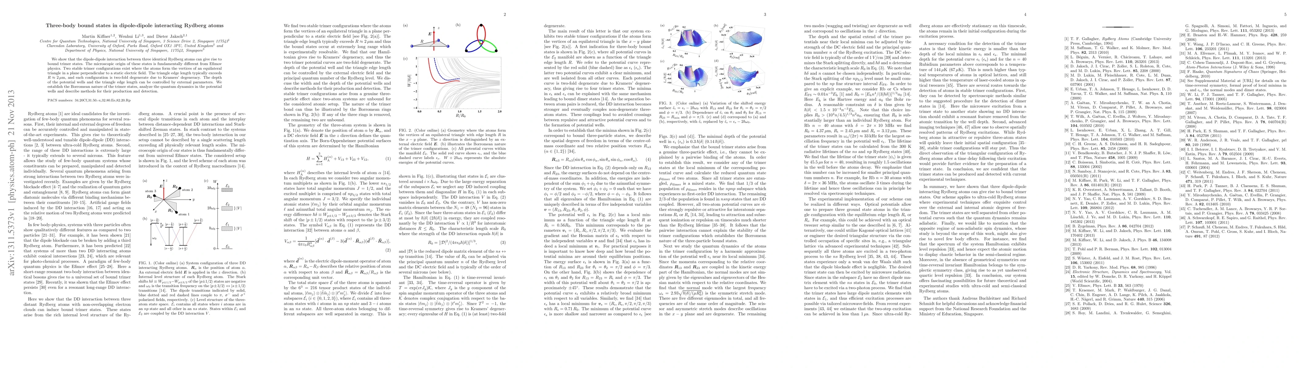 This paper demonstrates that three identical Rydberg atoms can form stable bound trimer states through dipole-dipole interactions, distinct from Efimov physics. The trimers exhibit Borromean nature, with configurations forming equilateral triangles in a plane perpendicular to a static electric field, and their edge lengths can be controlled externally.