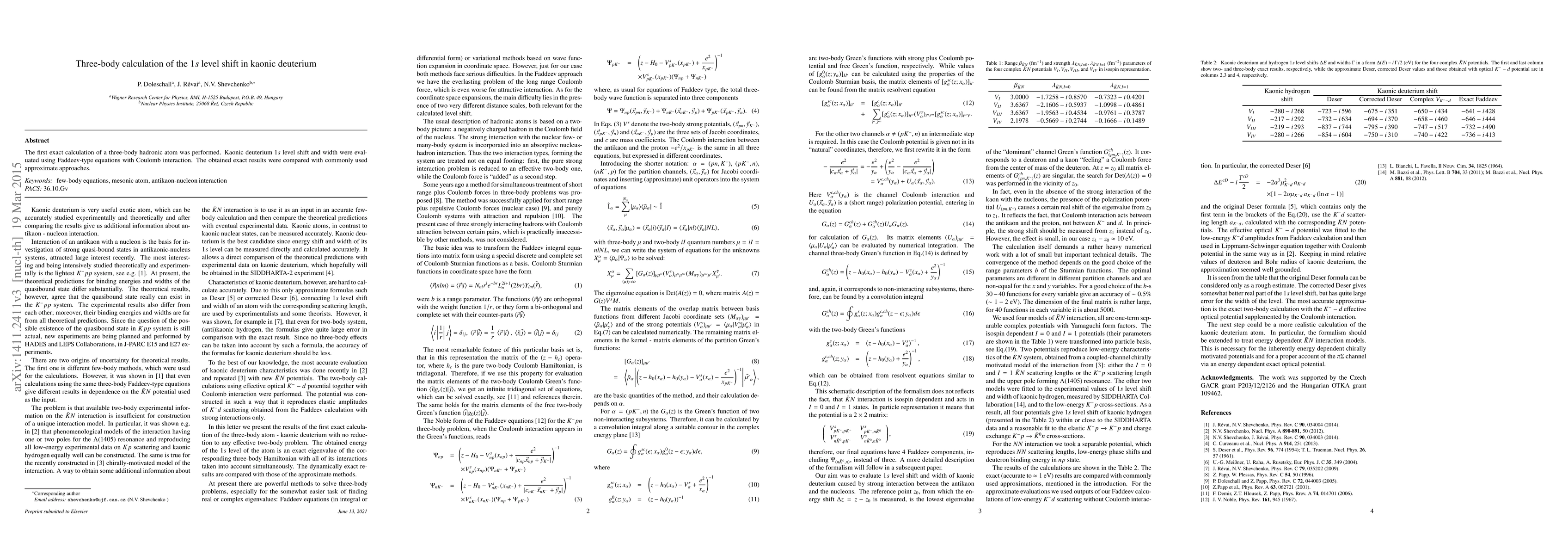 The first calculation of kaonic deuterium $1s$ level shift using Faddeev-type equations was performed. The obtained results were compared with commonly used approximate approaches.