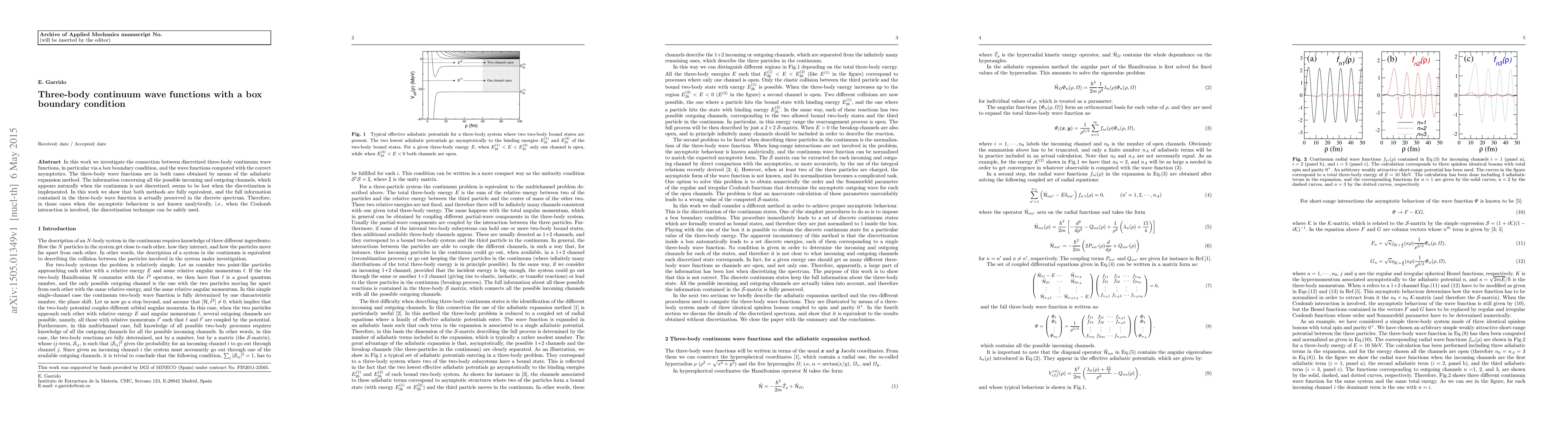 This paper explores the equivalence of three-body continuum wave functions computed with and without a box boundary condition, both derived using the adiabatic expansion method. It demonstrates that despite the discretization, all relevant information is preserved, allowing the technique to be safely applied even when asymptotic behavior is not analytically known.