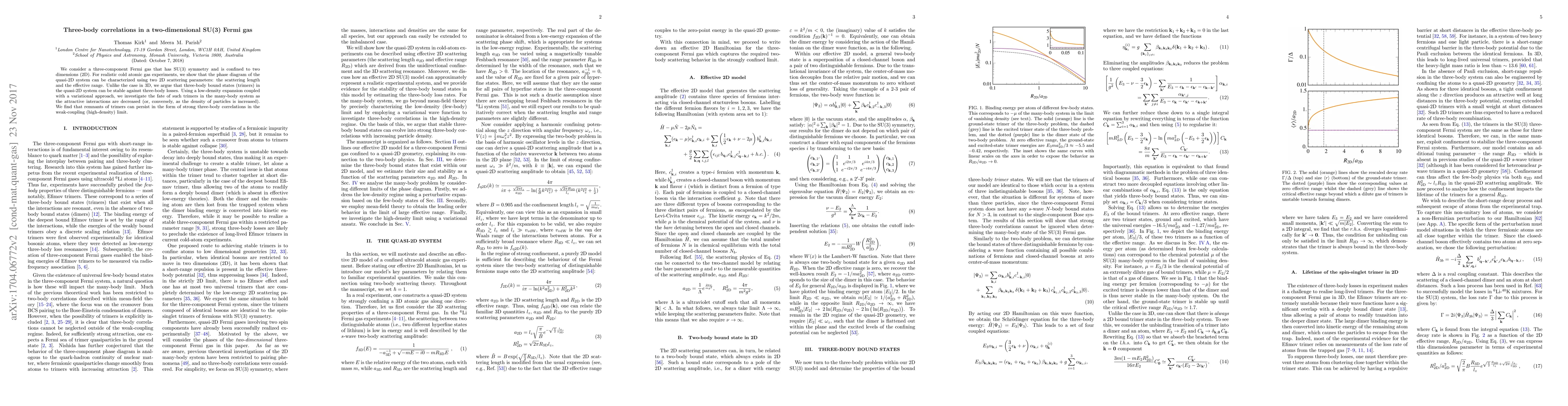 Researchers studied a three-component Fermi gas in 2D with SU(3) symmetry, finding stable three-body bound states called trimers that can persist even at high densities.