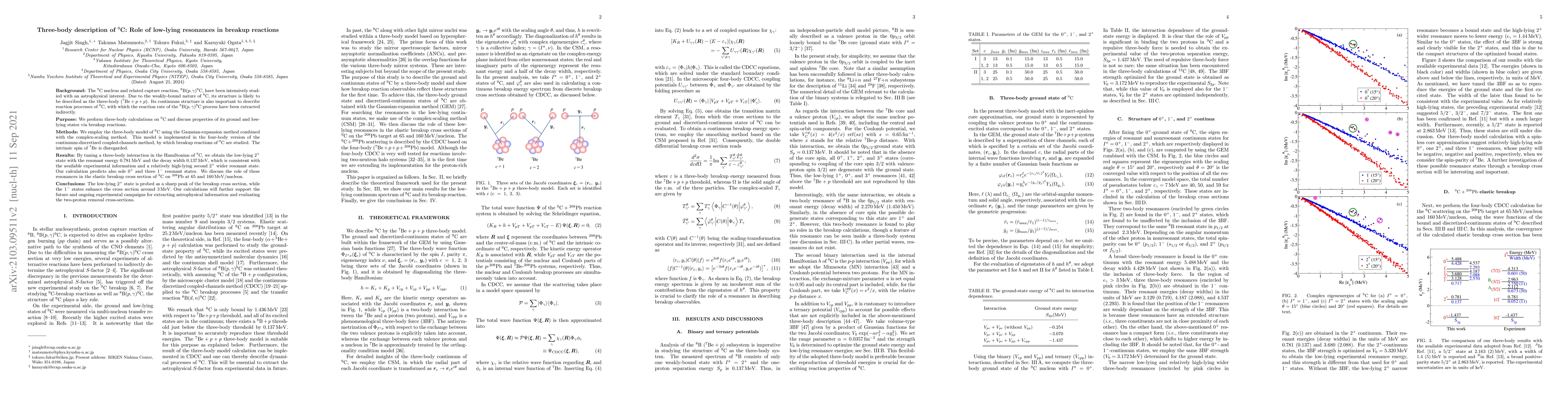 Researchers used a three-body model to study the structure of $^9$C, finding low-lying resonant states that influence its breakup reactions, which have implications for astrophysical processes and future experiments.