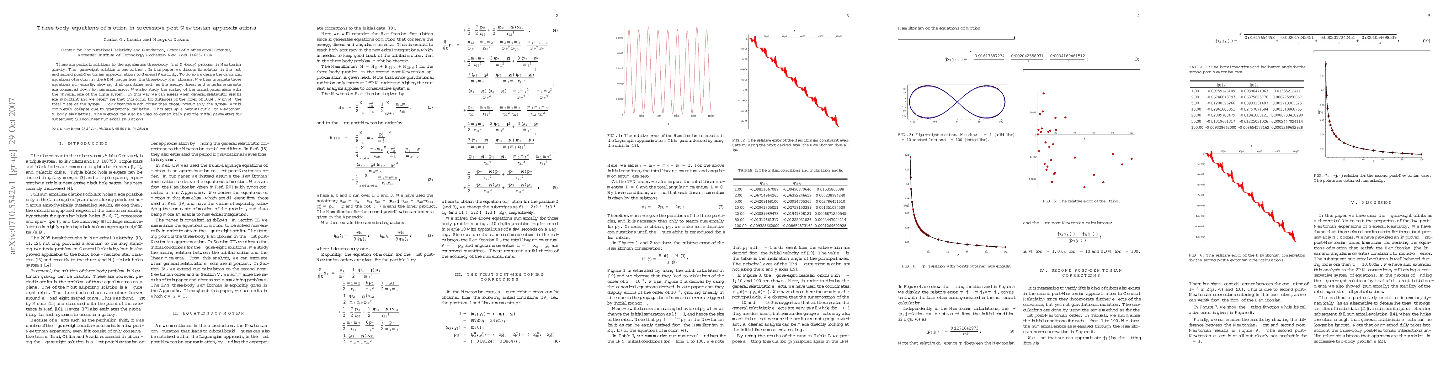 This paper examines the figure-eight solution in equal-mass three-body problems, integrating the derived post-Newtonian equations of motion numerically to validate conservation laws and assess when general relativistic effects become significant, determining this occurs at distances around 100 times the total mass.