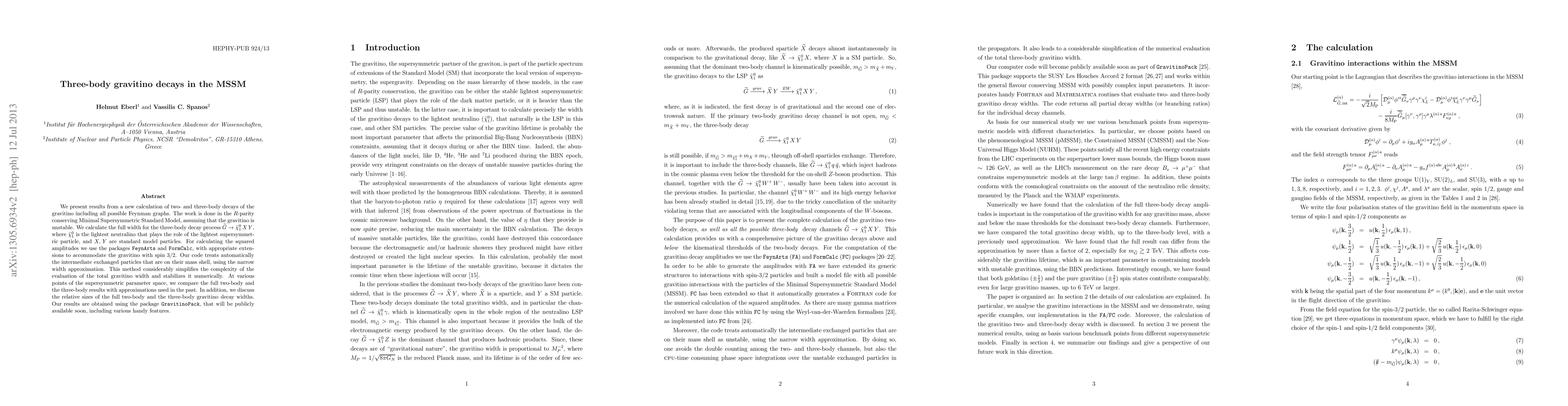 This paper presents a detailed calculation of gravitino decay processes in the MSSM, focusing on three-body decays, and compares these results with previous approximations. The study employs advanced computational tools and methods to evaluate the gravitino decay widths, providing a comprehensive analysis of the decay dynamics.
