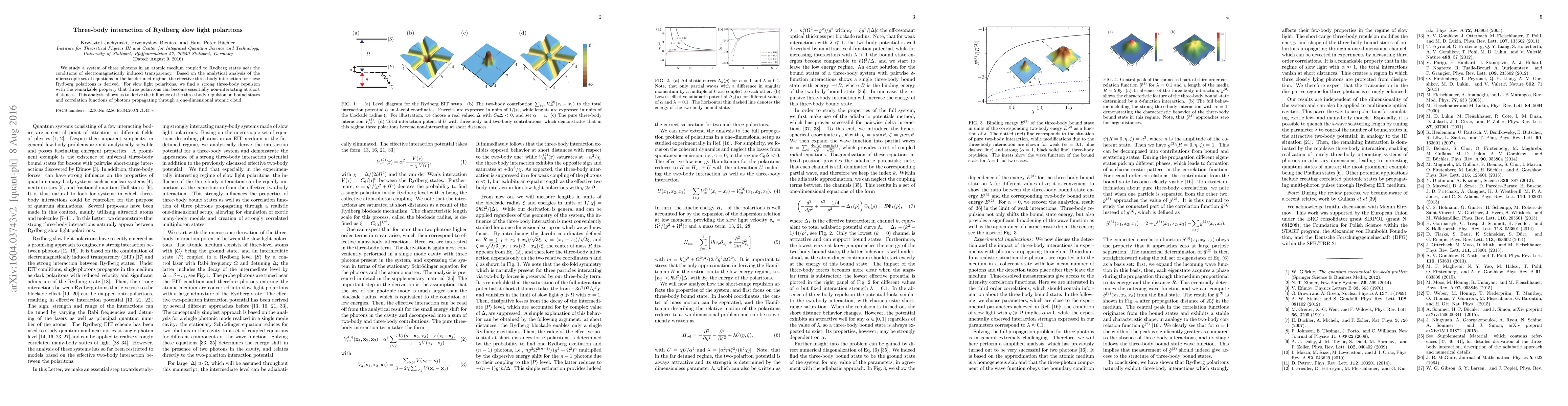 This paper investigates the three-body interaction of Rydberg slow light polaritons in an atomic medium near electromagnetically induced transparency, revealing a strong three-body repulsion that allows for non-interacting states at short distances, and analyzes its impact on photon bound states and correlation functions.