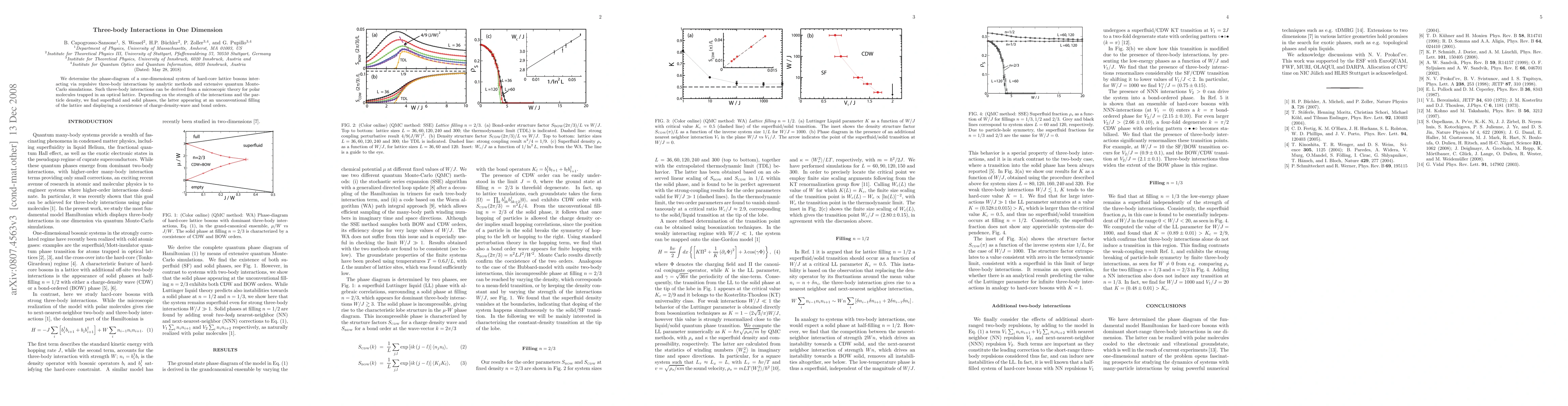 This paper investigates the phase-diagram of one-dimensional hard-core lattice bosons with repulsive three-body interactions, revealing superfluid and solid phases, including a unique solid phase at unconventional filling with coexisting charge-density-wave and bond orders, determined via analytic methods and quantum Monte-Carlo simulations.