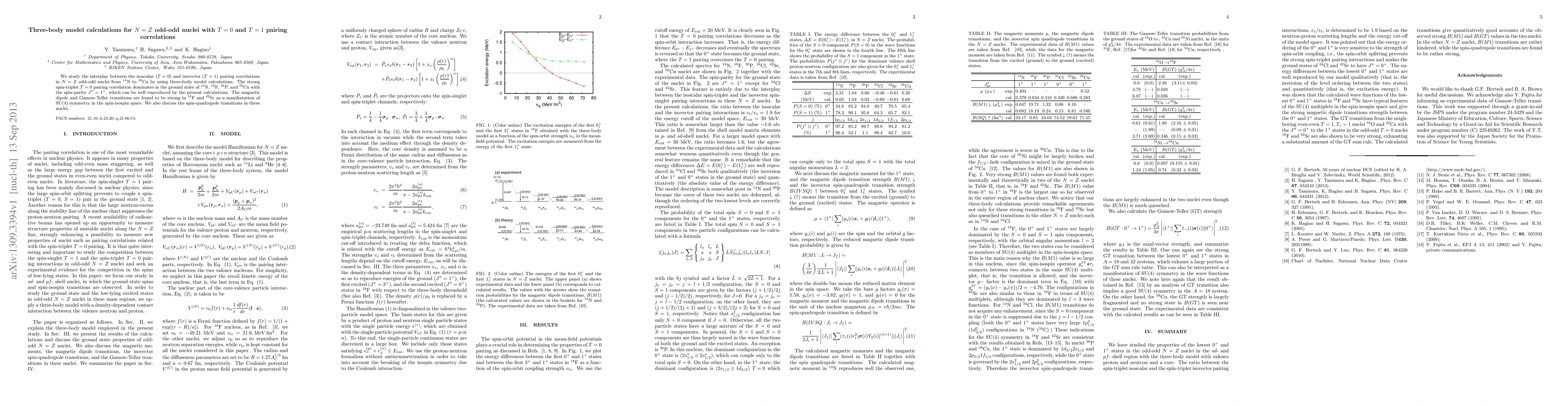 This paper investigates the influence of T=0 and T=1 pairing correlations in N=Z odd-odd nuclei using three-body model calculations, revealing strong T=0 pairing in ground states and significant magnetic and Gamow-Teller transitions in certain nuclei, indicative of SU(4) symmetry.