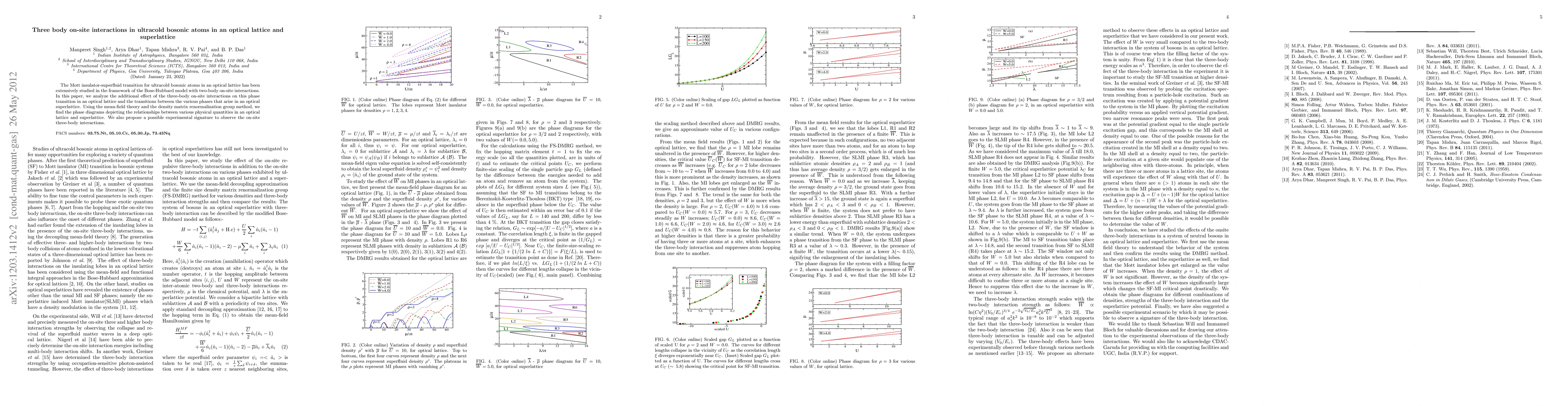 This paper explores the impact of three-body on-site interactions on the Mott insulator-superfluid transition in ultracold bosonic atoms within optical lattices and superlattices. Utilizing mean-field theory and density matrix renormalization group, the authors present phase diagrams and propose experimental methods to observe these interactions.