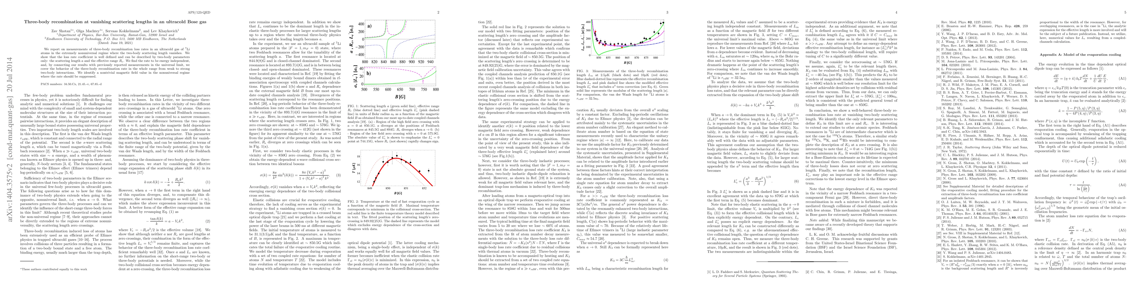This study measures three-body recombination rates in ultracold $^7$Li atoms where the two-body scattering length is zero, showing the rate is defined by two-body parameters $a$ and $R_e$ and is energy independent. The findings bridge the behavior from weak to strong interactions and identify a magnetic field where the rate significantly decreases.