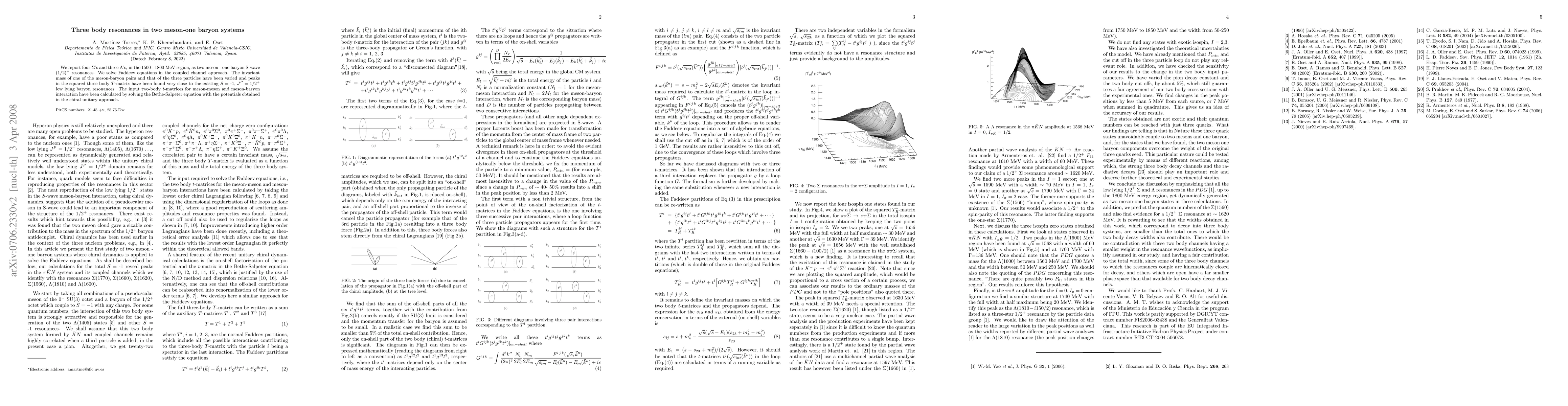 This paper identifies four $\Sigma$ and three $\Lambda$ resonances in the 1500 - 1800 MeV range as S-wave $(1/2)^+$ two meson-one baryon resonances, solved using the coupled channel Faddeev equations. Peaks in the three-body $T$-matrix suggest these resonances are close to existing low-lying baryon states.