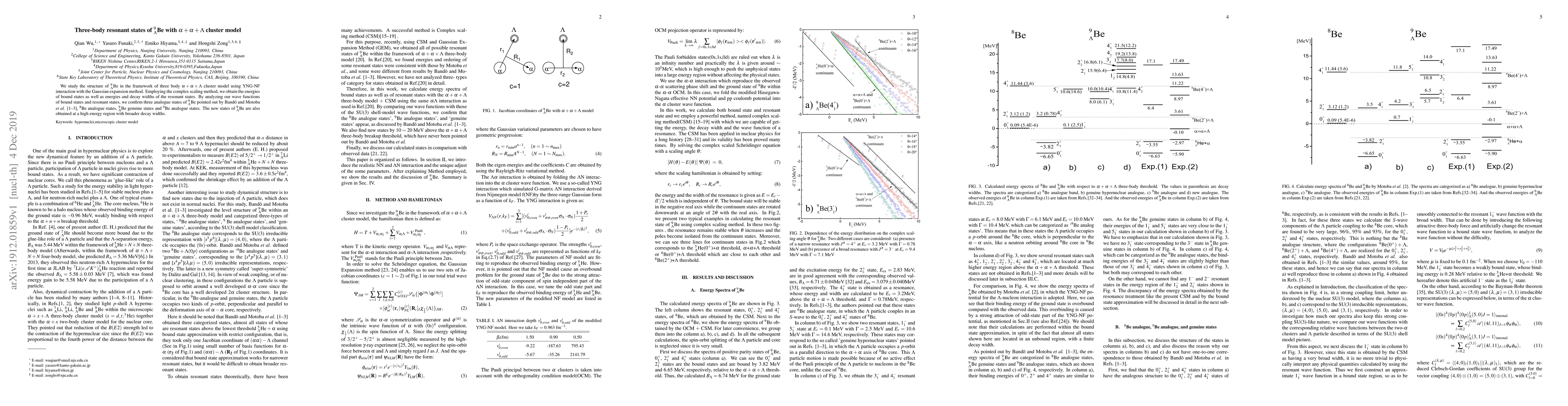 This paper investigates the structure of $^9_\Lambda$Be using a three-body $\alpha+\alpha+\Lambda$ cluster model and YNG-NF interaction, revealing three analogue states and new high-energy resonant states with broader decay widths. The study employs complex scaling and Gaussian expansion methods to determine energies and decay properties.
