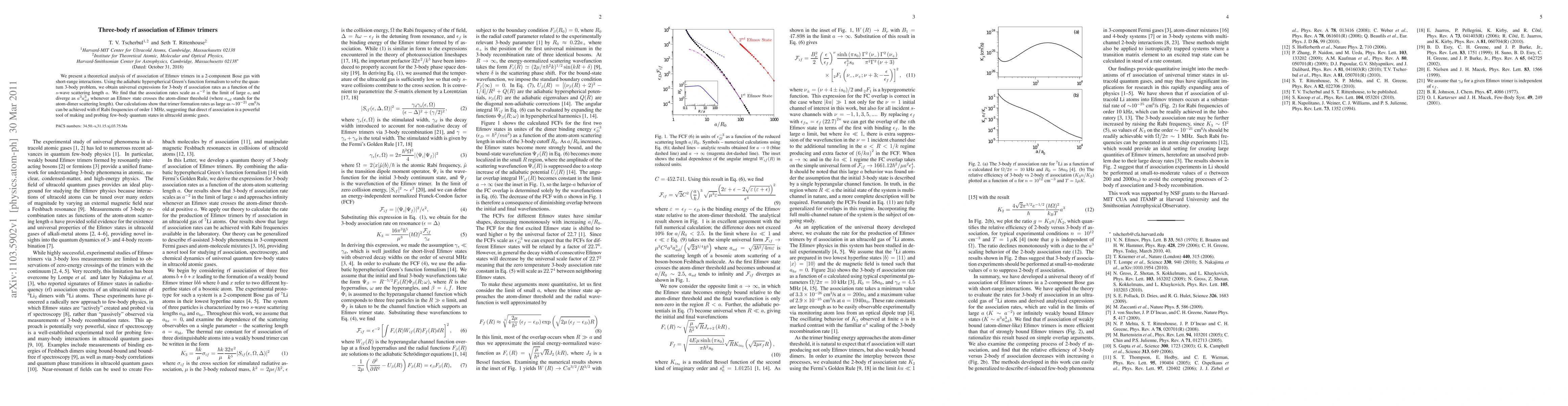 We present a theoretical analysis of rf association of Efimov trimers in a 2-component Bose gas with short-range interactions. Using the adiabatic hyperspherical Green's function formalism to solve the quantum 3-body problem, we obtain universal expressions for 3-body rf association rates as a function of the s-wave scattering length $a$. We find that the association rates scale as $a^{-2}$ in the limit of large $a$, and diverge as $a^3 a_{ad}^{3}$ whenever an Efimov state crosses the atom-dimer threshold (where $a_{ad}$ stands for the atom-dimer scattering length). Our calculations show that trimer formation rates as large as $\sim10^{-21}$ cm$^6$/s can be achieved with rf Rabi frequencies of order 1 MHz, suggesting that direct rf association is a powerful tool of making and probing few-body quantum states in ultracold atomic gases.