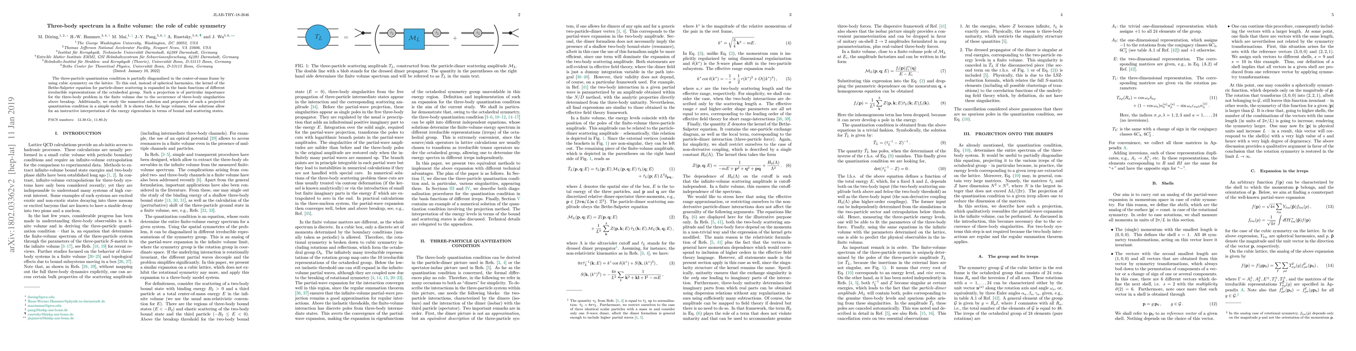 The three-particle quantization condition is partially diagonalized in the center-of-mass frame by using cubic symmetry on the lattice. To this end, instead of spherical harmonics, the kernel of the Bethe-Salpeter equation for particle-dimer scattering is expanded in the basis functions of different irreducible representations of the octahedral group. Such a projection is of particular importance for the three-body problem in the finite volume due to the occurrence of three-body singularities above breakup. Additionally, we study the numerical solution and properties of such a projected quantization condition in a simple model. It is shown that, for large volumes, these solutions allow for an instructive interpretation of the energy eigenvalues in terms of bound and scattering states.