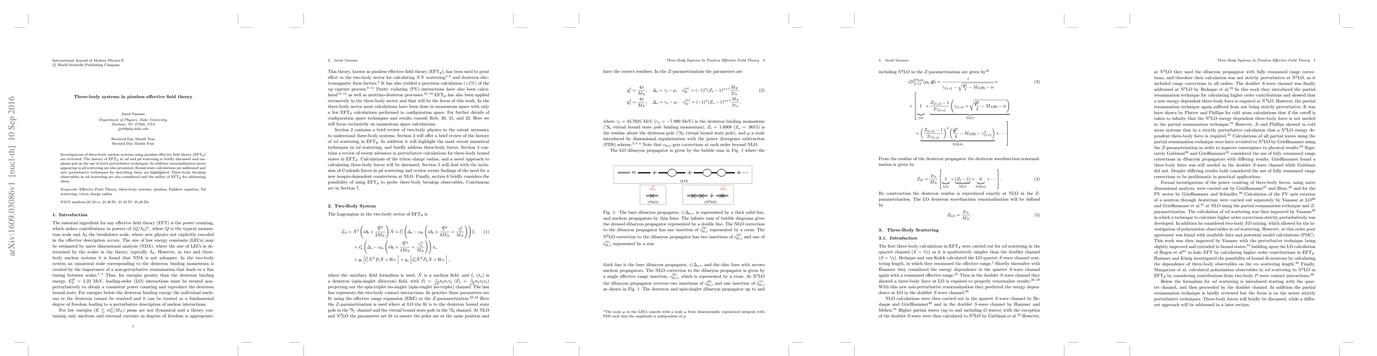 This paper reviews the application of pionless effective field theory ($\mathrm{EFT}_{\not{\pi}}$) to three-body nuclear systems, emphasizing strict perturbative techniques and new methods for bound state calculations and three-body breakup observables in $nd$ scattering. It also discusses renormalization issues in $pd$ scattering.