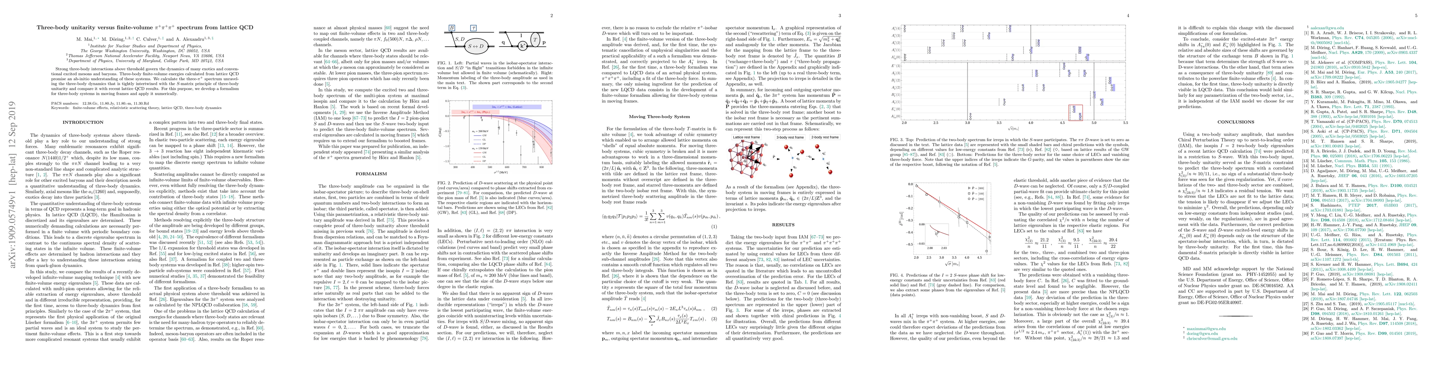 This research investigates the three-body dynamics of $\pi^+\pi^+\pi^+$ interactions using lattice QCD, aiming to understand exotic and conventional excited mesons and baryons. The study develops a formalism for three-body systems in moving frames and compares calculated finite-volume three-$\pi^+$ spectrum results with recent lattice QCD findings to test three-body unitarity.