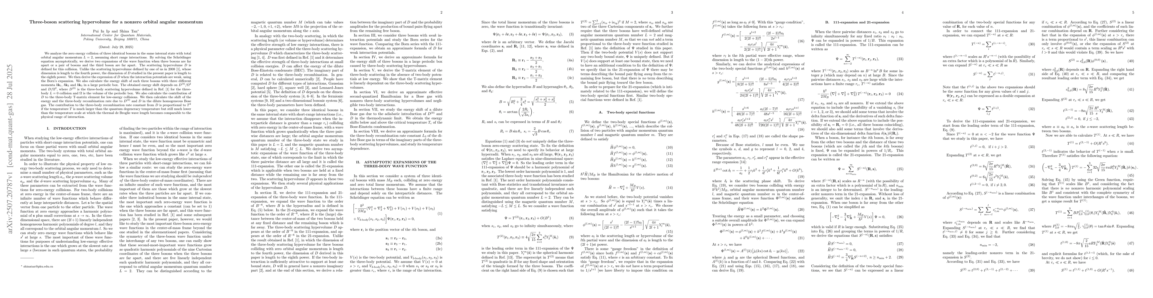 The paper introduces a new definition of the three-body scattering hypervolume D for L=2, extending previous work on L=0, and derives its expression for weak interactions using Born's expansion.