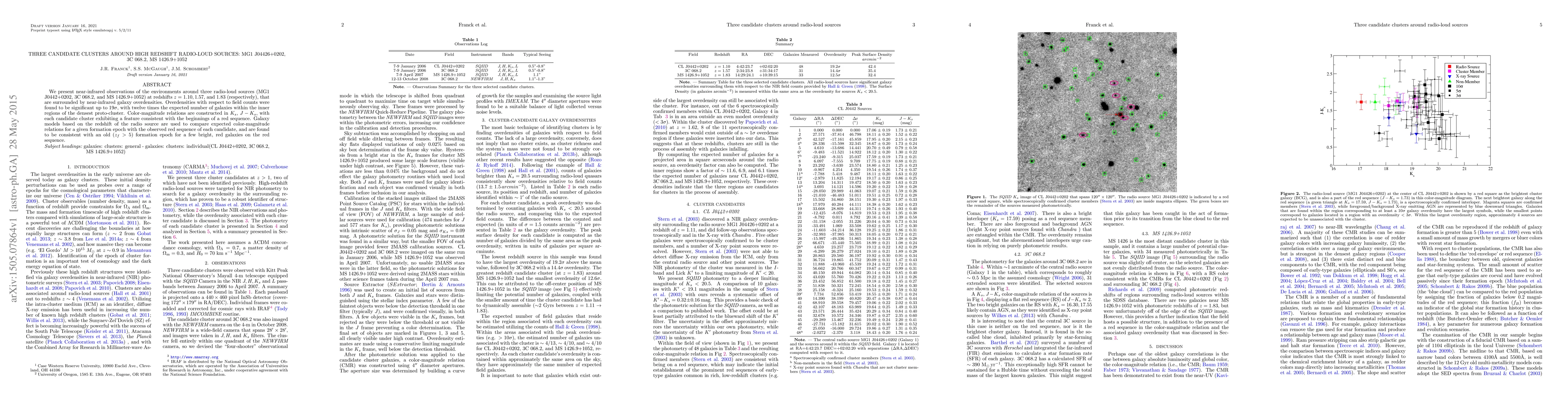 Researchers identify three radio-loud sources surrounded by galaxy overdensities at high redshifts, suggesting proto-clusters around z=1.10, 1.57, and 1.83, with old formation epochs.