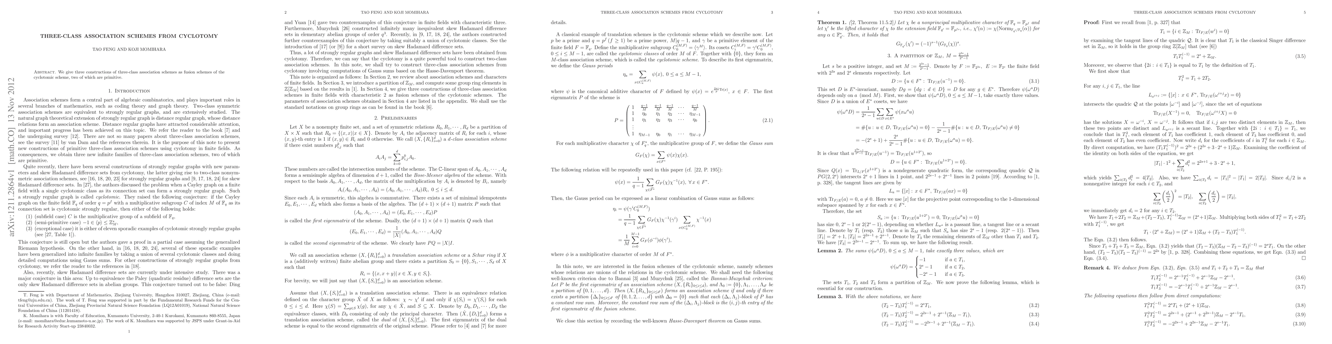 We give three constructions of three-class association schemes as fusion schemes of the cyclotomic scheme, two of which are primitive