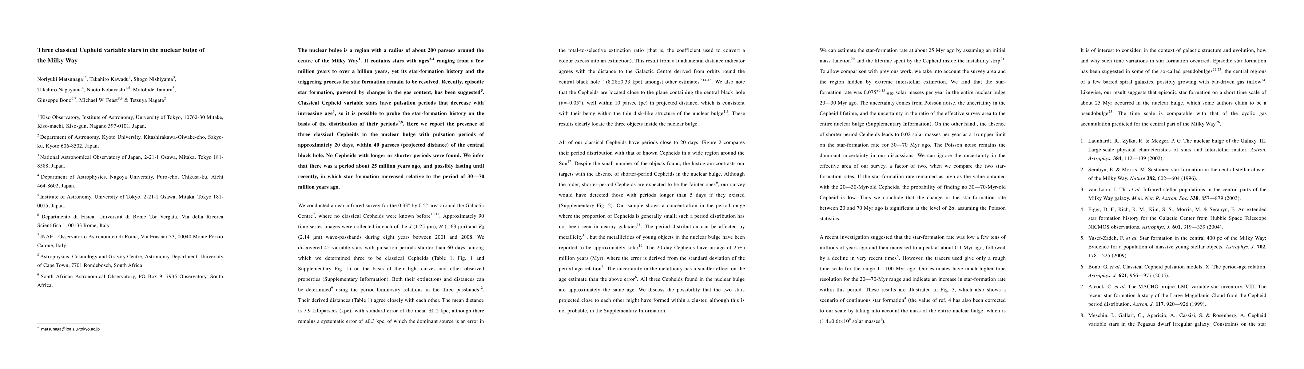 Researchers discovered three classical Cepheid variable stars in the Milky Way's nuclear bulge, suggesting a period of increased star formation 25 million years ago. This finding sheds light on the star-formation history of the galaxy's central region.